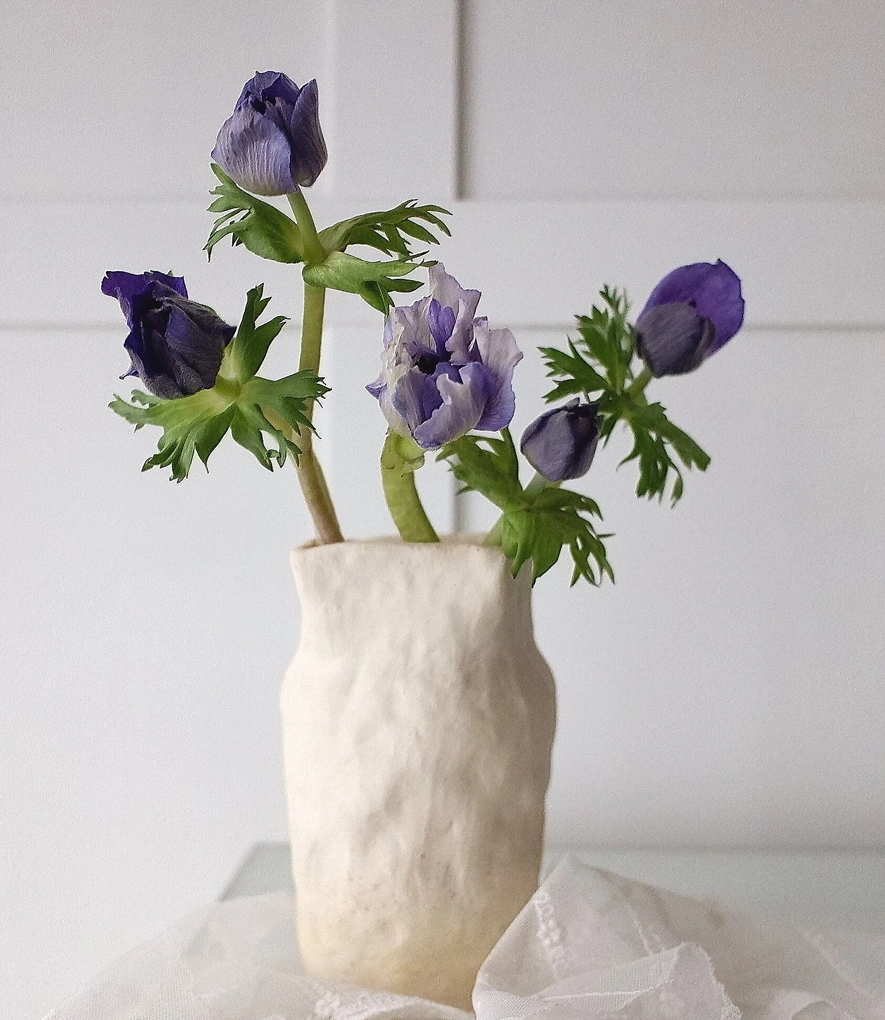 잔뜩 오므리고 있는 다섯 송이 아네모네도