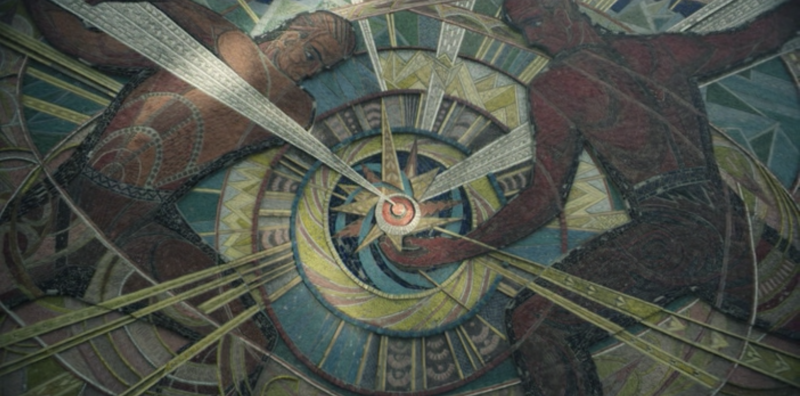 위의 시는 러시아 시인 콘스탄틴 시모노프의 <알렉세이 수르코프>라는 작품으로, 전쟁의 참혹함을 덤덤하게 담아내어 당시 많은 관심을 받았었다. 해당 시가 낭독되면서 2화가 시작이 되는데, 이 시가 전쟁에 대한 내용을 담고 있다는 점을 보면 <체르노빌>에서 주기적으로 반복되는 또 다른 메타포가 '전쟁'임을 알 수 있다. 이를 시각적으로도 뒷받침하듯 배경에는 용병으로 보이는 두 남자가 대립하는 모자이크 작품이 비친다. 체르노빌에서 벌어진 폭발 사고를 말하는 것이 아니다. 모든 상황을 아우르는 사실 조작과 은폐, 복잡하게 얽힌 이해관계에 따른 판단으로 희생양이 되는 민간인들을 말하는 것이다. 이건 또 하나의 전쟁이다.