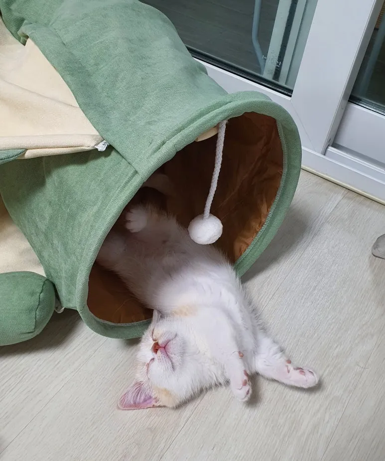 쿠션으로 된 숨숨집이나 고양이가 좋아한다는 바스락거리는 소리가 나는 종이집도 모두 무서워했다.