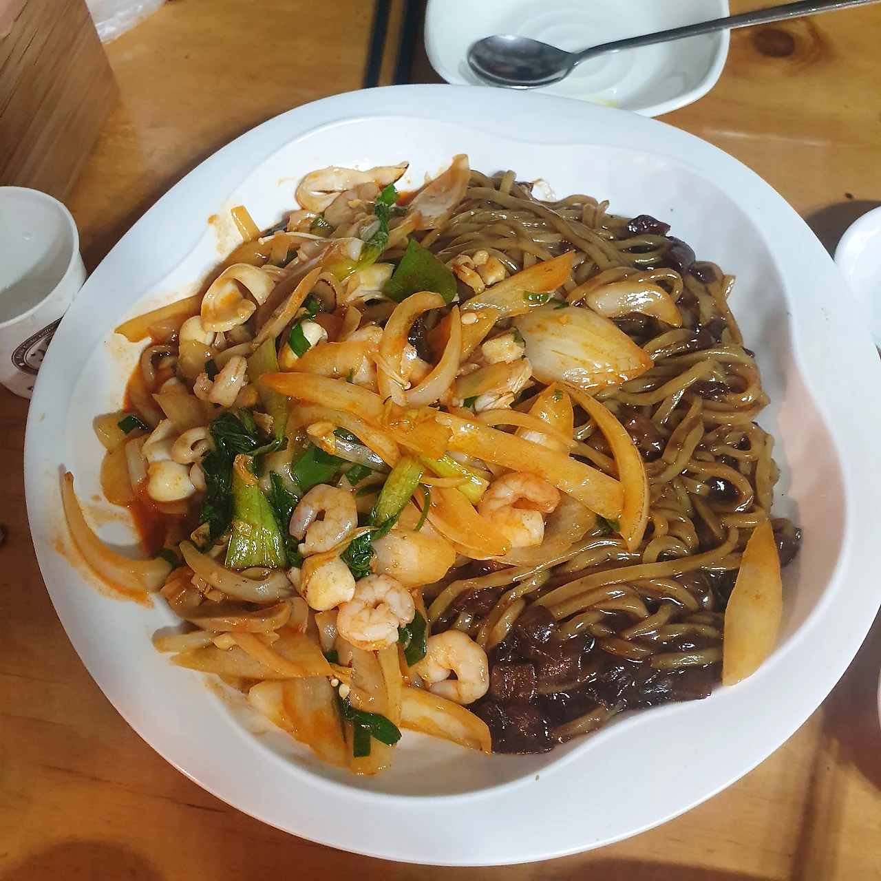 잠시 후 메뉴가 나왔는데 쟁반짜장은 짜장과 볶음 짬뽕이