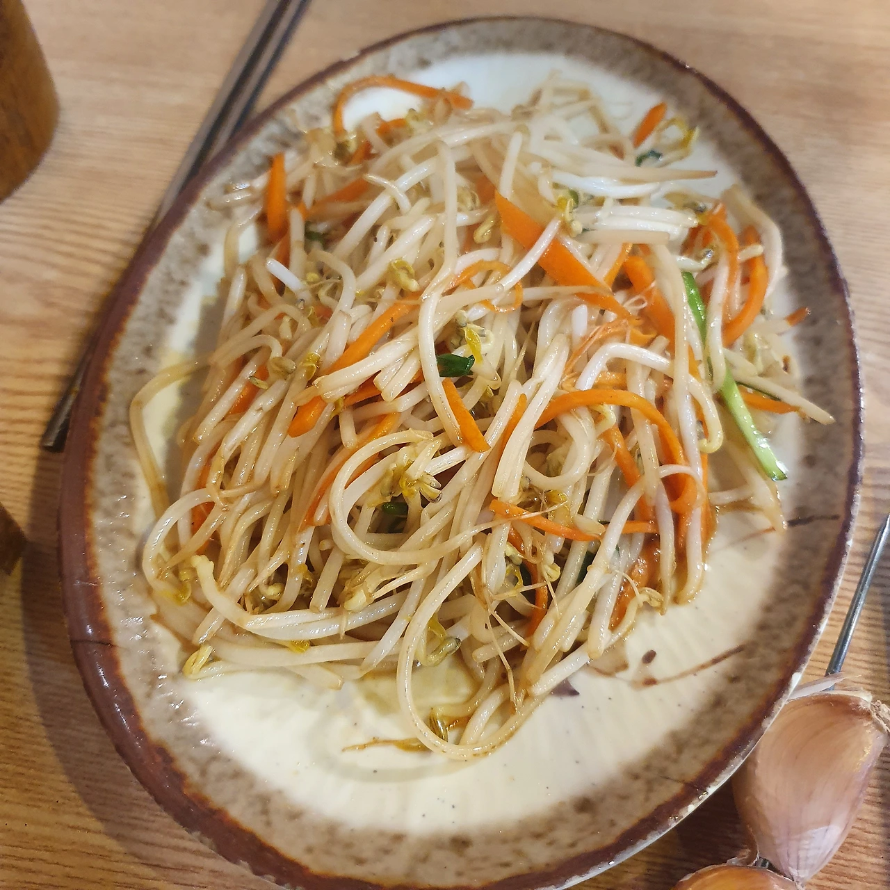 숙주를 맛있게 볶아 서비스라며 주셨는데 평소 나물을 좋아하는 우리 딸내미의 취향을