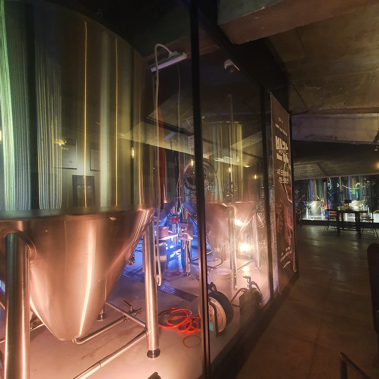 들어서자마자 보이는 거대한 맥주 증류기가 시선을 압도합니다.