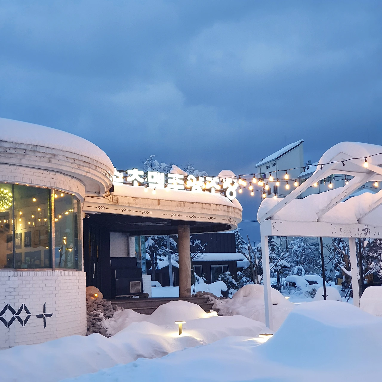 맥주를 한잔 마시기 전부터 황홀한 설경에 취했습니다.