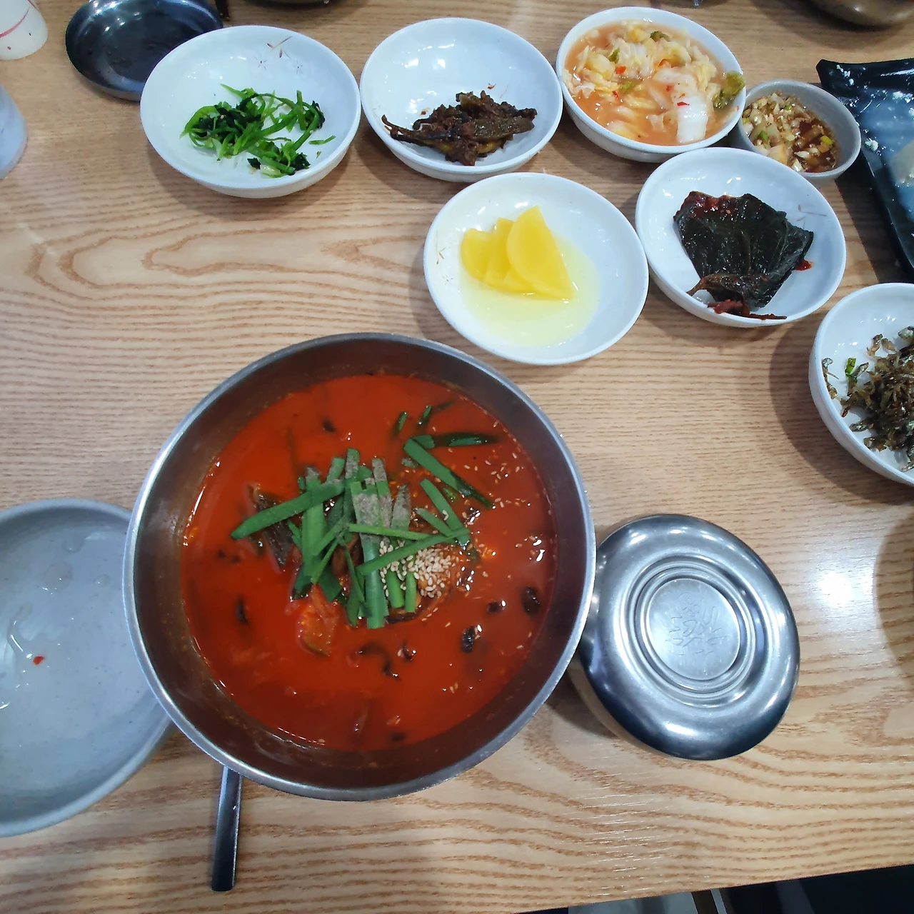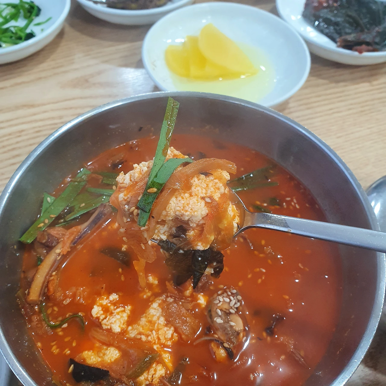 시뻘건 국물 안에 몽글한 순두부를 함께