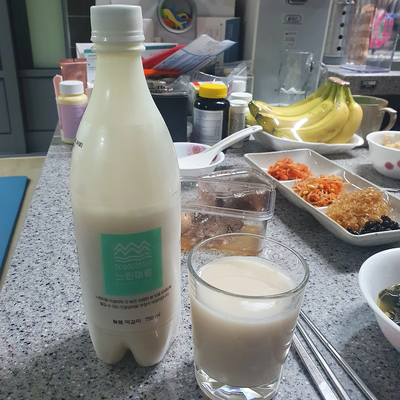 오늘은 집에 오는 길에 막걸리 한 병 챙겼습니다.