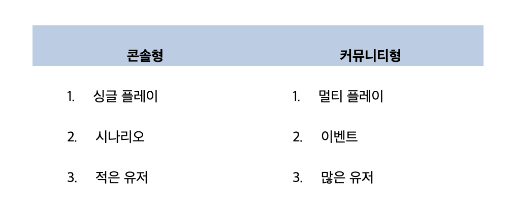 그러나 여기서 중요한 점은 어느 한쪽에 치우치지 말아야 한다는 것. 예를 들어 커뮤니티 성향이 너무 강해 그 외에 부분은 상관없다고 보는 경우가 있다. 커뮤니티 성 게임은 어느 정도 사람이 모이고 그룹이 형성되면 자체적으로 커뮤니티를 이끌고 나가기 때문에 개발자로서는 그 외에 콘텐츠나 기타 업데이트 사항에 대한 압박이 적을 수 있다.