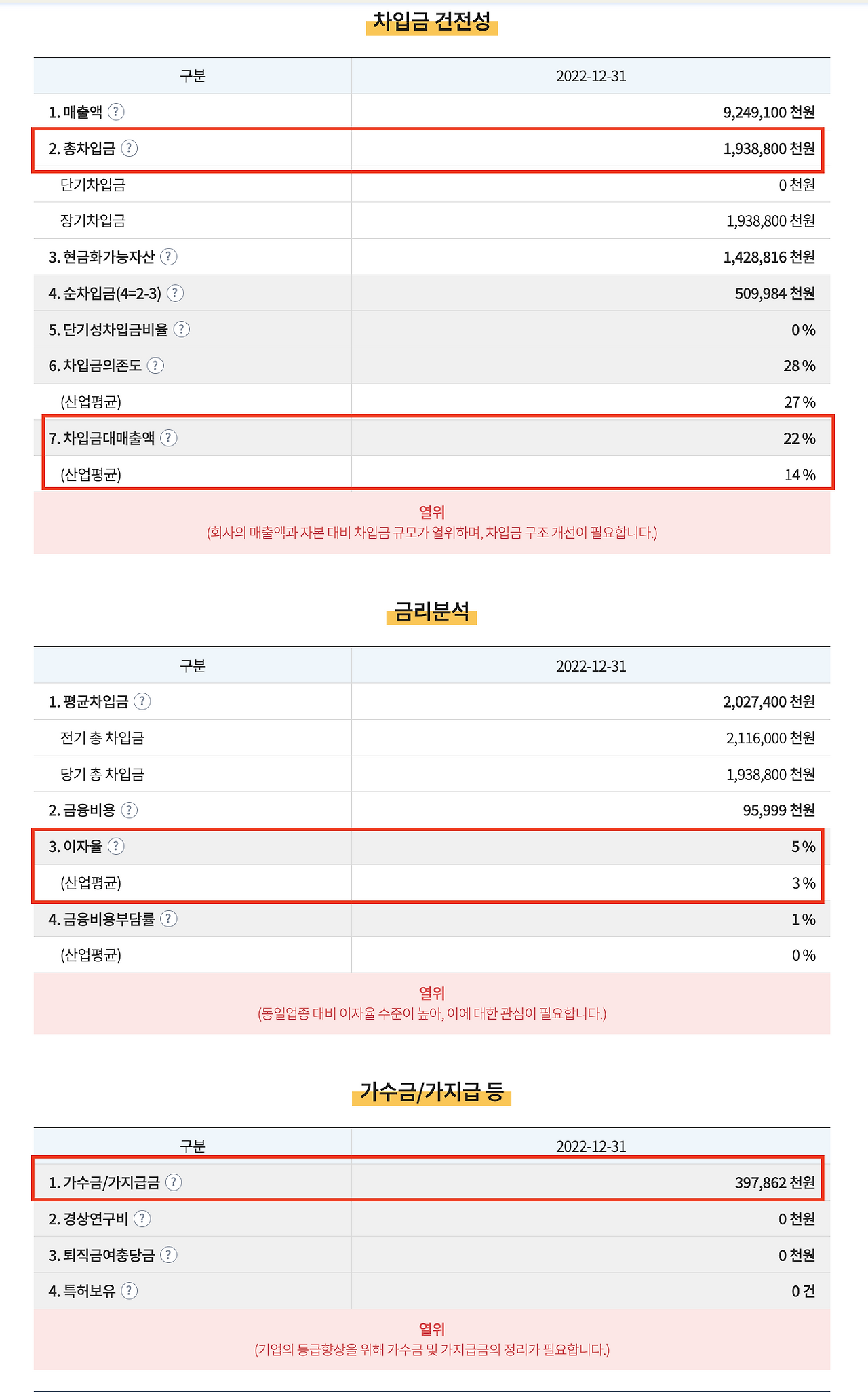 차입금 분석은 기업이 현재 대출이자의 이율을 확인할 수 있습니다.