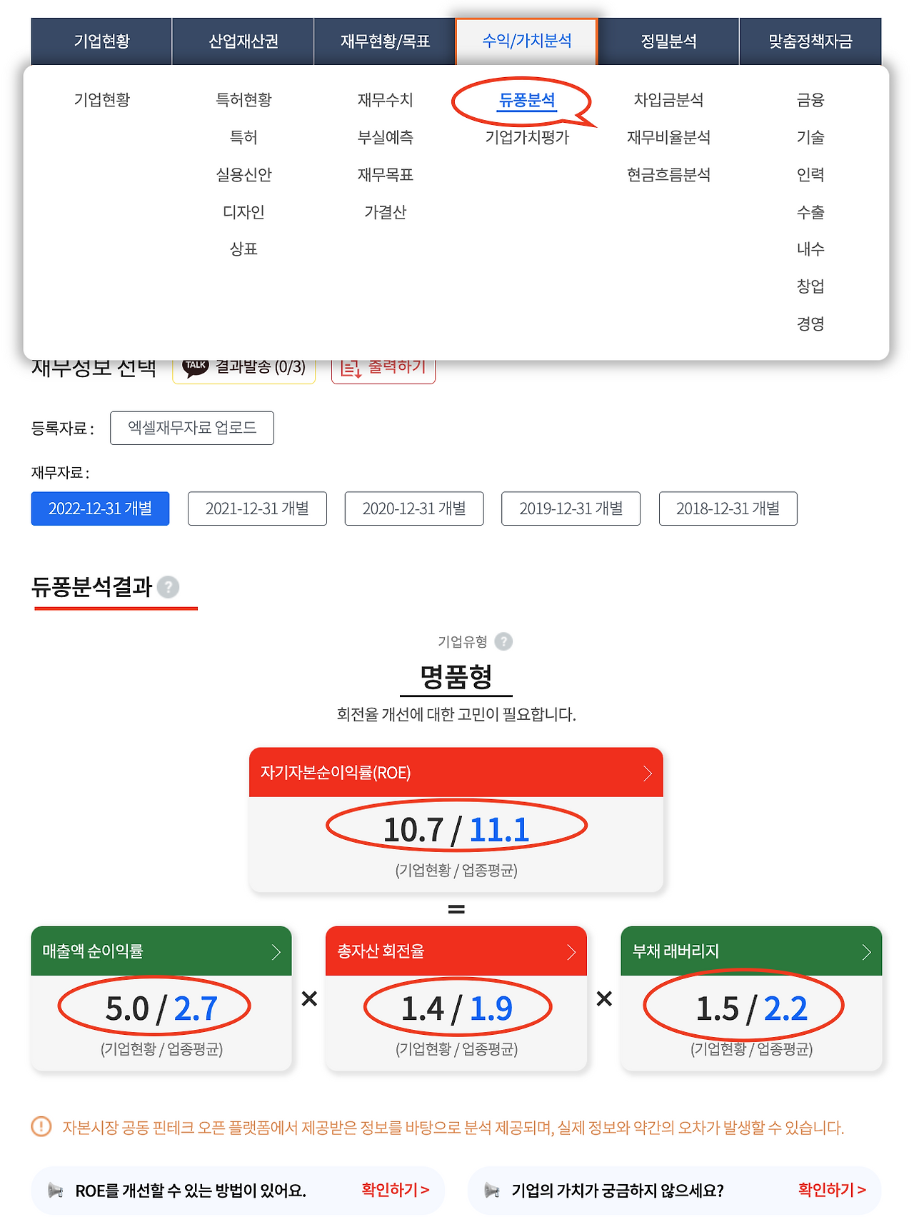 --> 수익성을 먼저 따져봅니다. (비즈탑의 듀퐁분석)