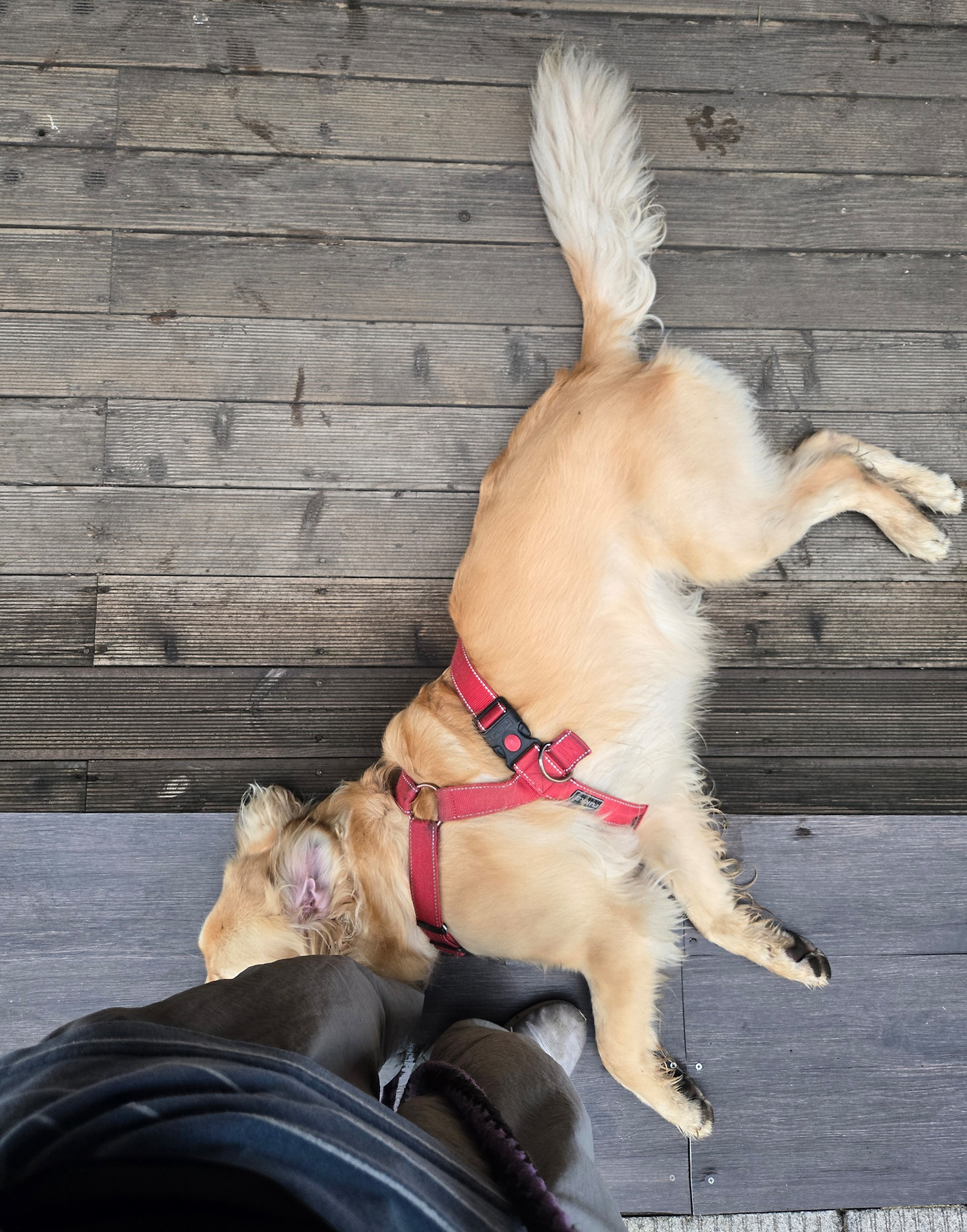 심지어 날씨까지 선선해지면 바닥에 누워 바람이 부는 방향으로 코를 가져다 대고 가을을 온전히 즐깁니다.