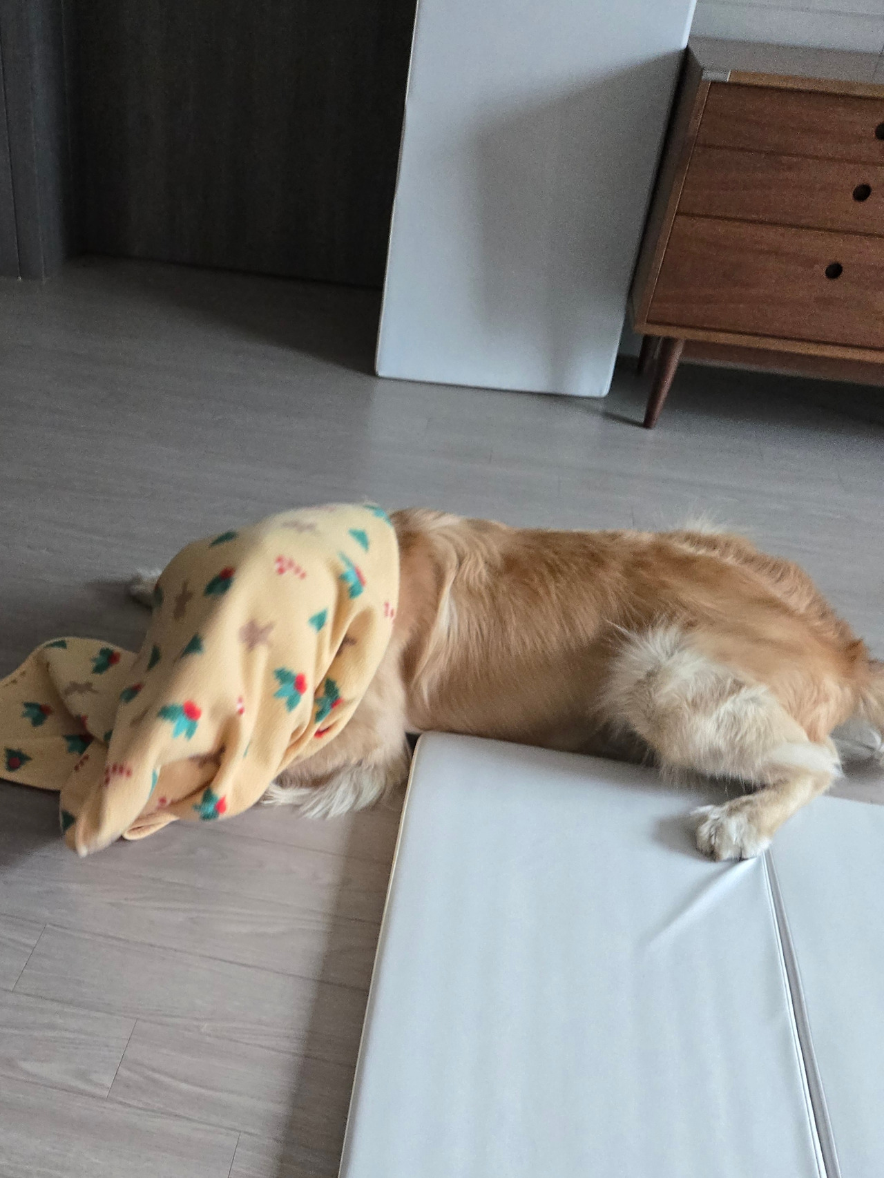 너무 나대서.... ㅎㅎ 남편이 담요로 삼월이를 덮어