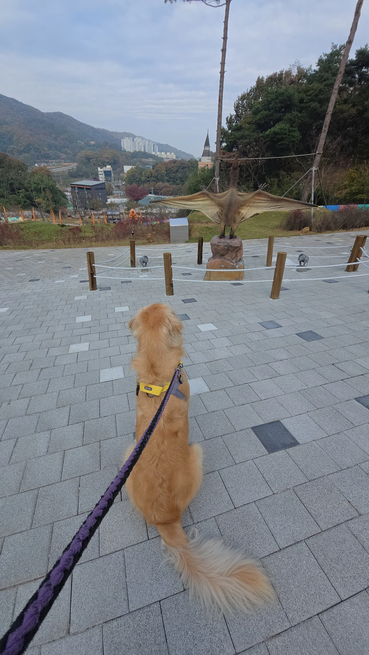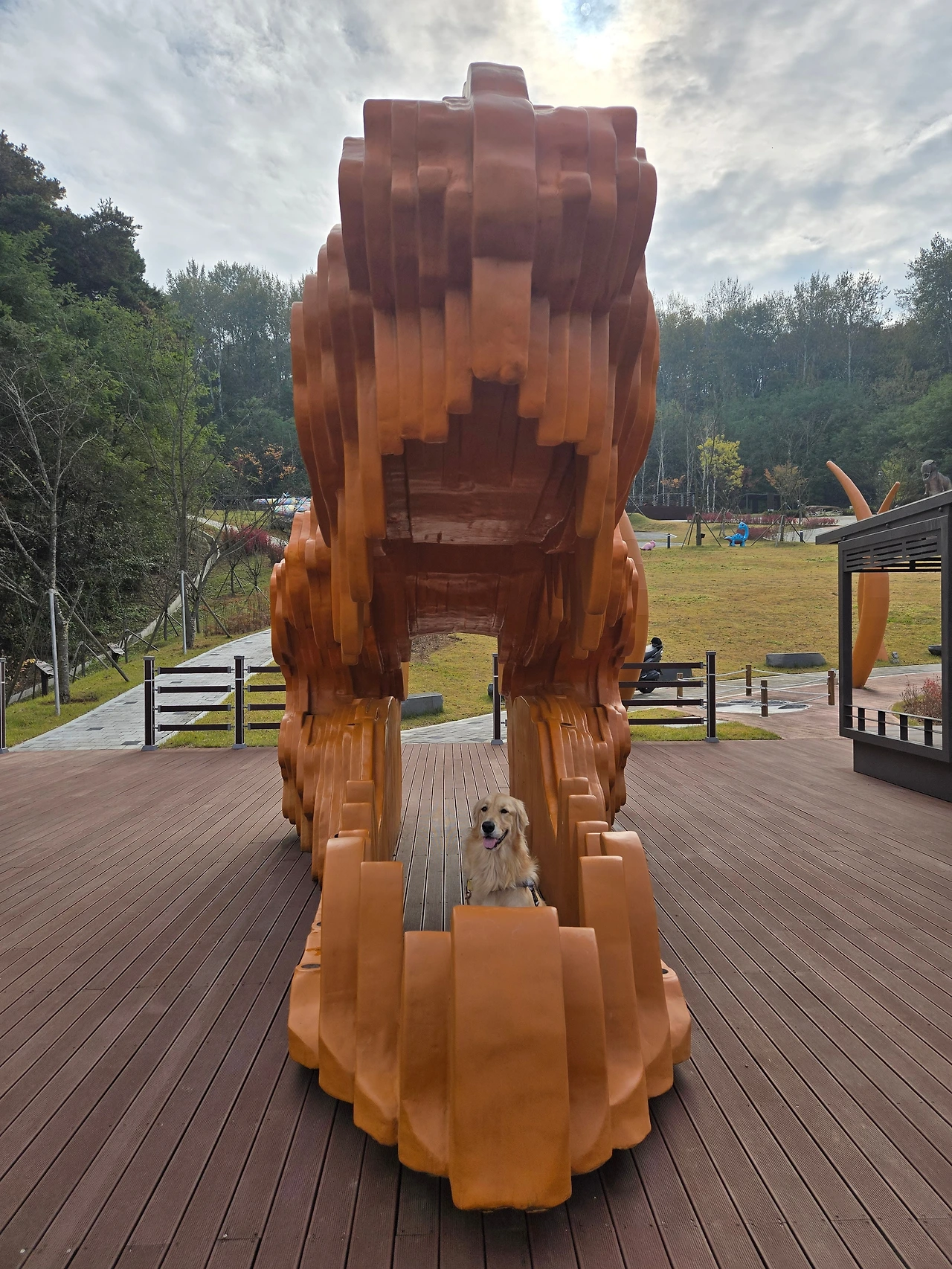 우리 삼월이도 공룡 모형 안에서 견생샷 한 컷!