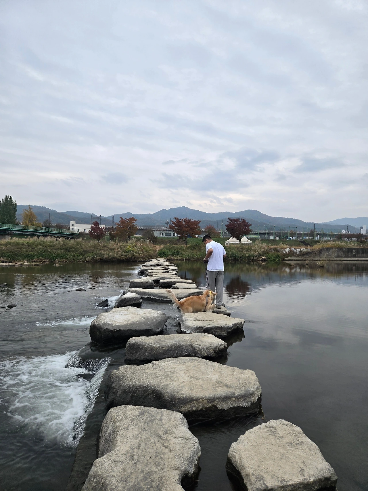 남편이 돌다리 건너기를 도전해 보겠다 해서 오케이
