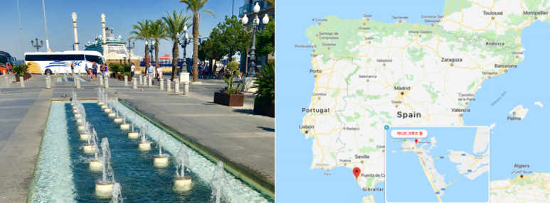 크루즈 터미널은 카디스만 중심부 알폰소 13세 항에 위치해 있습니다. 중세 시대의 건축 양식이 잘 보존된 카디스는 스페인 남서부 지역을 대표하는 항구도시입니다.