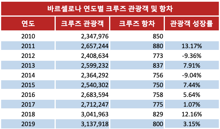 스페인으로 입항하는 전체 크루즈 관광객 중 30%가 넘는 3백만 명이 유입되는 바르셀로나항은 2015년 이후 관광객 대비 연평균 6%에 가까운 성장률을 나타내고 있는 유럽 제1의 크루즈 시장입니다.