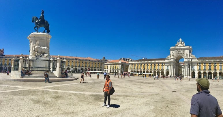 리스본 기항지 여행은 리스본에서 가장 규모가 큰 ‘코메리시우스 광장’(Praça do Comércio)에서 출발합니다. 크루즈 터미널에서 태주 강을 따라 약 5분 정도 걸으면 마주하게 되는 코메리시우스 광장은 1775년 리스본 대지진 후 재건되었으며, 당시 도시 재건에 앞장선 조세 1세의 기마상이 중앙에 위치해 있습니다. 광장 북쪽으로는 개선문을 만나게 되는데요. 본격적인 리스본 여행을 위한 관문입니다.