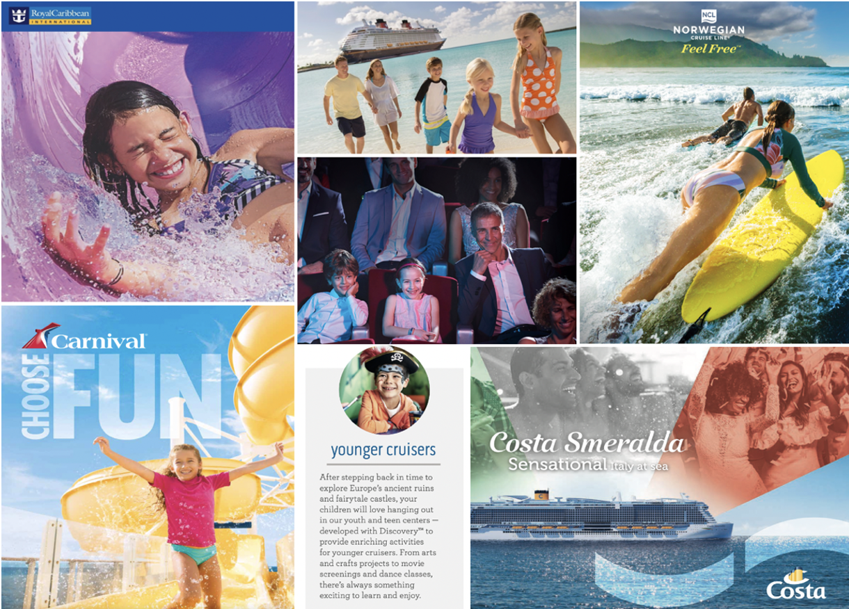 과거 크루즈 여행은 특정 연령층, 즉 은퇴자 및 노년층을 위한 여행상품이었다. 10일 이상의 일정으로 대부분 고가 상품이었으며, 선내에서는 주로 노년층을 위한 액티비티와 프로그램이 제공되었기 때문이다. 현대에 이르러 수천 명의 승객을 수용할 수 있는 대형 크루즈선들의 건조 기술과 일주일 미만의 대중적인 크루즈 상품이 판매되면서 크루즈 수요층은 노년층 중심에서 모든 연령대로 확산하게 된다. 무엇보다도 부모와 유아 및 청소년이 함께 참여하는 가족 프로그램과 다양한 레스토랑 및 기항지 관광상품이 제공되면서 크루즈 여행은 유아에서부터 노년층까지 모든 연령대가 함께 즐길 수 있는 관광상품으로 성장하고 있다.