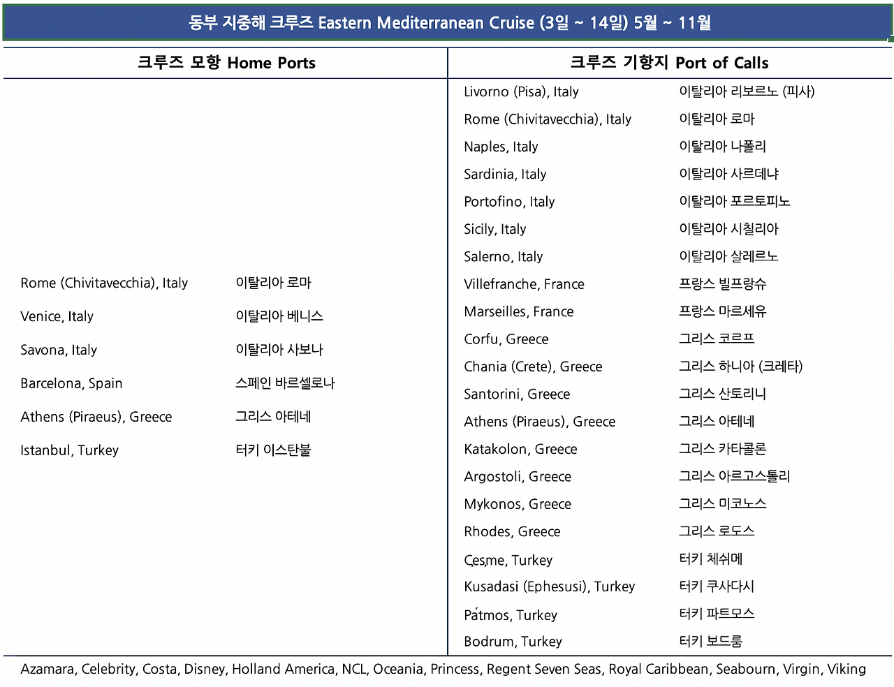 동부 지중해 크루즈 Eastern Mediterranean Cruises