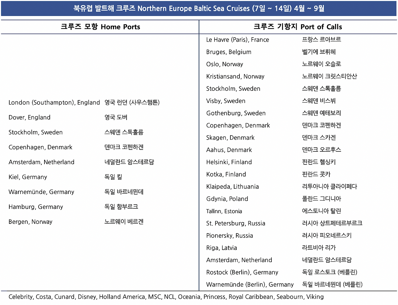 북유럽 발트해 크루즈 Northern Europe Baltic Sea Cruises