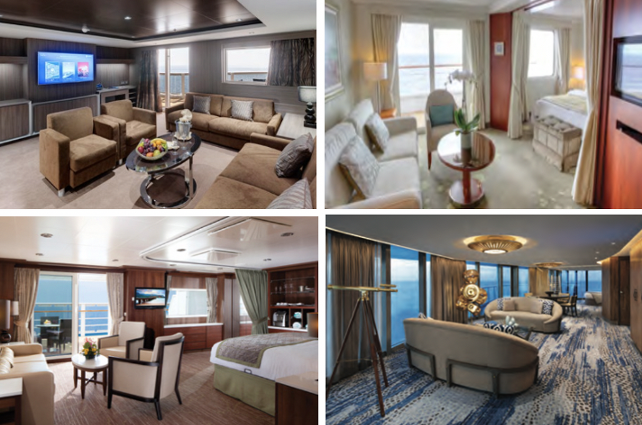 한편 스위트 객실의 승객에게는 간식과 음료(주류포함)를 무료로 즐길 수 있는 전용 라운지 이용을 비롯해서 선장이 주최하는 스위트 파티, 선장과 함께 식사하는 정찬, 승하선 우선권, 기항지 관광상품 구매 대행 서비스, 공연 및 엔터테인먼트가 펼쳐지는 대극장 지정석 배정 등 다양한 혜택이 부여된다.