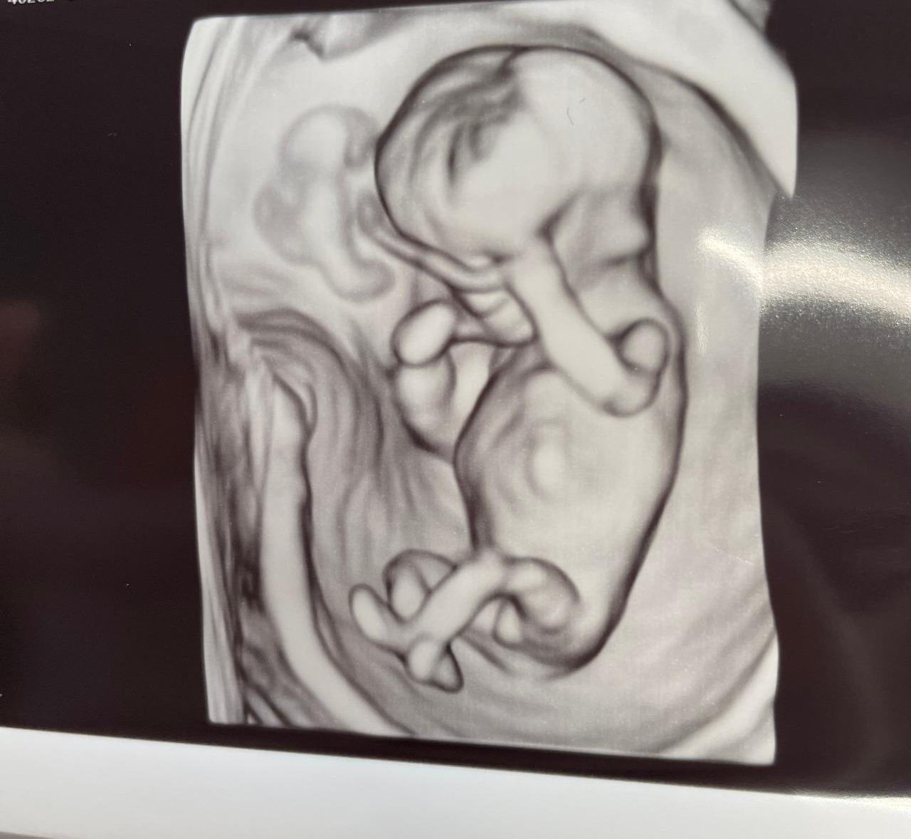 뱃속 아기는 웅크리고 낮잠을 잤다. 두 손으로 눈을 가리고 두 다리를 꼬고 자는 듯한 모양이 꽤 귀여웠다.