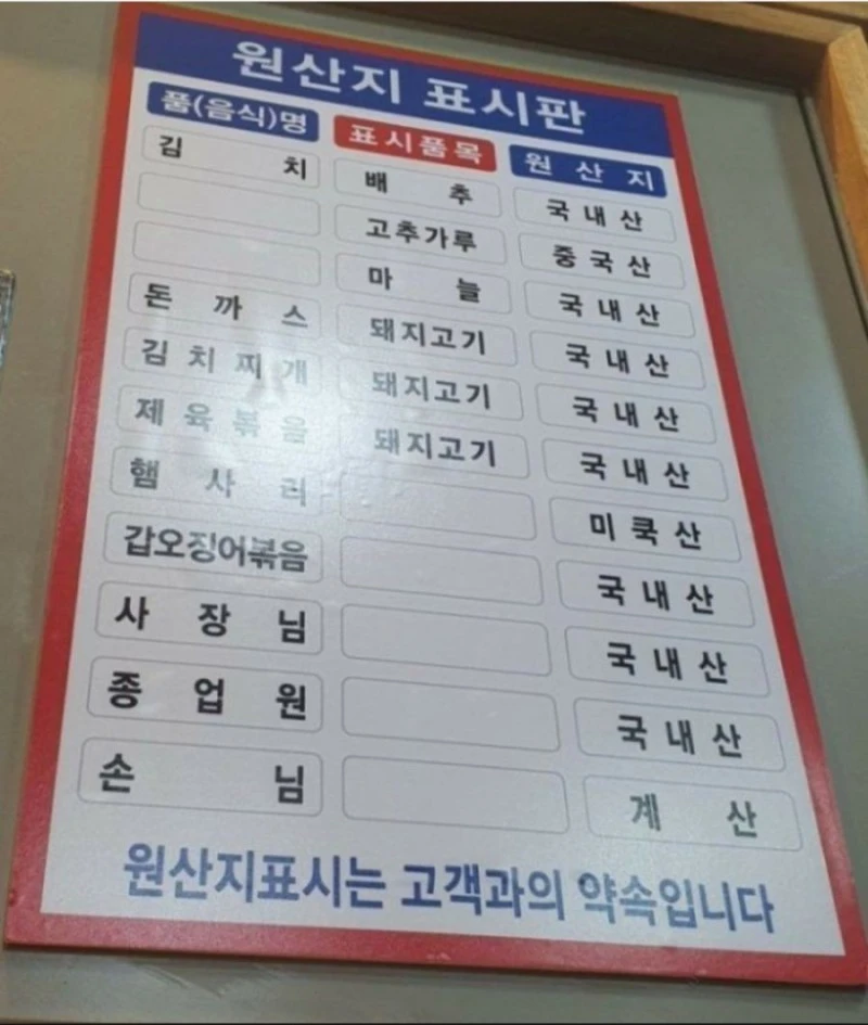 원산지는 유통기한과는 좀 다른 차원이라고 여겨진다.