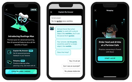 그림 1. GPT-4가 탑재된 듀오링고. *출처: OpenAI 공식 페이지