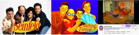 그림 5. Seinfeld와 이를 모티브로 한 GPT 콘텐츠 Nothing, Forever. *출처: 구글 검색, Nothing, Forever 트위치 방송 캡처