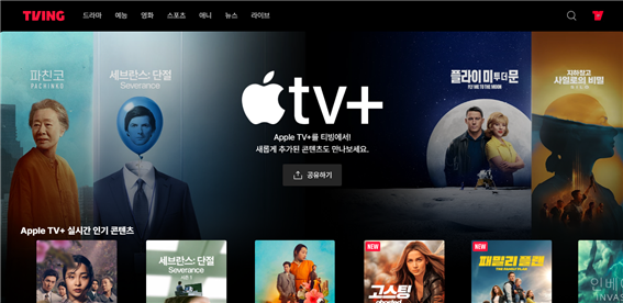 2024년 12월부터 티빙에서 Apple tv+ 콘텐츠를 시청할 수 있다. 주로 Apple tv+는 Apple 디바이스를 이용하는 사용자를 대상으로 서비스를 제공하였다. 상대적으로 Apple tv+는 다른 OTT보다 서비스 접근성이 낮은 편이었다. 넷플릭스가 전 세계 2억 2,180만 명의 구독자를 확보한 것에 비해 Apple tv+는 2,500만 명에 그치는 수준이었기 때문이다. 그러나 Apple tv+ 에는 뉴욕타임스 베스트셀러로 선정된 동명 소설을 원작으로 제작한 <파친코>를 비롯해 故이선균 배우가 주연인 SF 스릴러 <DR. 브레인> 등과 같이 화제성과 고품질을 자랑하는 다수의 오리지널 콘텐츠를 보유하고 있다. 티빙은 Apple tv+ 브랜드관을 구성하여 월 17,000원의 프리미엄 서비스를 이용하는 구독자에게만 Apple tv+ 오리지널 콘텐츠를 제공한다. 티빙 입장에서는 Apple tv+ 콘텐츠를 추가하면서 이용자가 선택가능한 시청 옵션을 확대할 수 있었다.