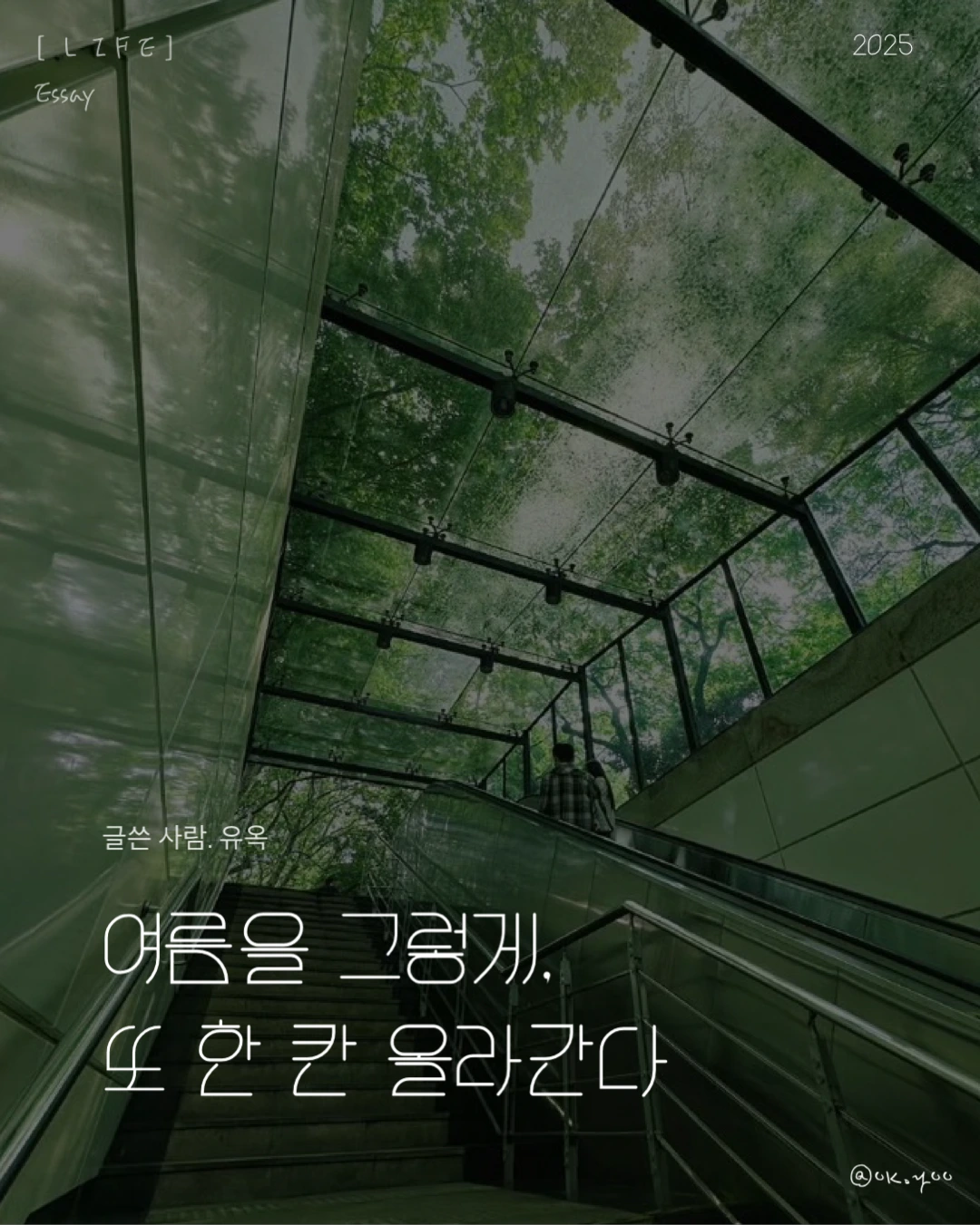 지하철 계단을 오르다 보면 문득 멈칫하게 되는 순간이 있다. 낮은 천장과 인공 조명이 끝나는 지점, 그 틈 사이로 바깥 풍경이 액자처럼 펼쳐질 때. 가로로 길게 찢긴 하늘 사이로 구름이 둥둥 떠다니고 그 아래로는 뜨거운 햇빛에 데워진 도시가 미동 없이 펼쳐진다.
