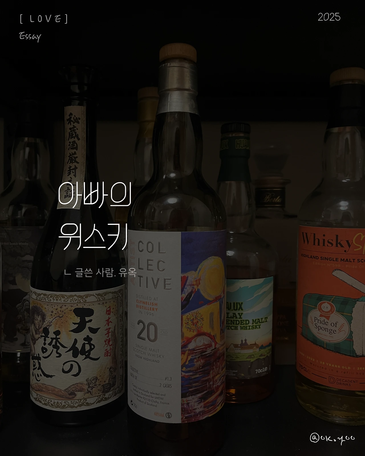 나는 아빠의 술을 한 병 열어, 잔에 따르고, 천천히 목을 축인다. 쓴맛 뒤에 번지는 알싸한 향이 목을 타고 흐르며 오래된 유리병 속에 갇혀 있던 시간들이 풀려난다. 잔을 기울일 때마다 아빠가 살아온 나날의 무게가 한 모금씩 스며든다.