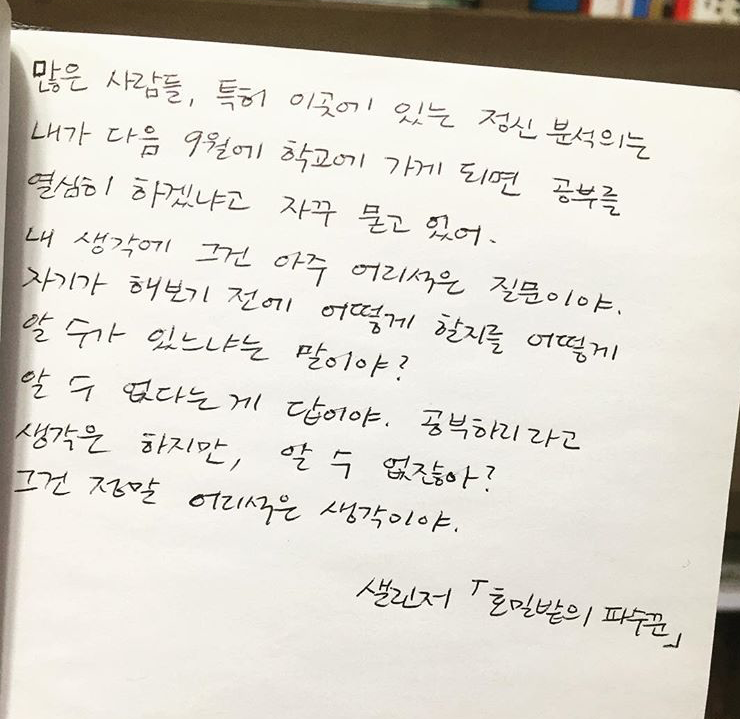 그 시절 무엇보다도 나를 힘들게 했던 것은 사실 따로 있었는데 그건 듣고 싶지 않은 노래를 억지로 들어야만 하는 괴로움과 서러움이었다. 더 크로스, 버즈, 얀, 플라워를 위시로 한 대한민국 남성 밴드의 음악은 나의 마음을 힘들게 하였고, 나의 귀를 아프게 했다. 학우들은 일말의 자비도 없이 쉬는 시간만 되면 힘껏 샤우팅 했고 나는 속수무책으로 눈물을 흘렸다. 친구 중 하나는 SG 워너비의 '소머리' 창법을 연습했다며 노래방에 가자고 나를 자꾸 귀찮게 했었는데, 내겐 소머리든 소몰이든 그건 알 바가 아니었고 다 집어치우고 그저 뜨끈한 소머리 국밥 한 그릇이 먹고 싶었을 뿐이었다.