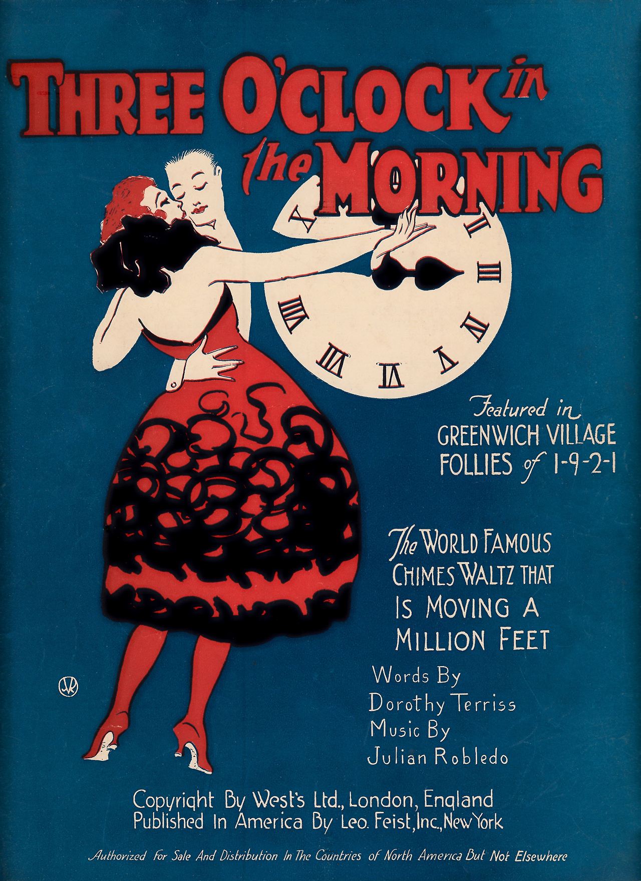 네 번째로 소개할 노래 <Three o'clock in the morning새벽 세 시>은 소설의 제6장에서 톰 뷰캐넌과 데이지 뷰캐넌 부부가 함께 개츠비의 토요일 파티에 참석한 날, 집으로 돌아갈 자동차를 기다리면서 '개츠비'의 정체를 두고 이야기를 주고받던 중 데이지의 시선이 꽂힌 불이 켜진 계단 꼭대기, 열린 문 틈 사이로 흘러나오는 곡이라는 설정으로 등장합니다(소설의 제5장에서 이미 데이지와 개츠비는 약 5년 만에 재회를 하고, 닉과 데이지는 개츠비의 대저택을 구경하고 난 이후입니다). 노래는 1918년 솔로 피아노곡으로 탄생하여, 1921년에 가사가 붙고, 폴 화이트먼 오케스트라 버전으로 대히트를 기록한 1920년대를 대표하는 왈츠곡 중 하나입니다.