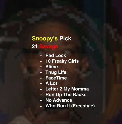 개인적으로 21 Savage의 음악을 무지하게 좋아합니다. 첫째, 그의 단조롭지만 군더더기 없는 래핑은 때로 심심하지만, 정확히 같은 이유로 질리지 않고 앨범을 여러 번 찾아 듣게 만드는 매력이 있어요. 둘째, 무탈하고 안전한 환경 속에서 보호받으며 자란 나 같이 나약한 인간은 어쩔 수 없이 내가 경험하지 못한 거칠고 험한 세상을 몸소 체험하고 졸업한 인간을 막연히 경외하게 됩니다. 셋째, 그가 살아온 인생과 그가 올라타 작품을 만드는 노래의 비트가 조금의 위화감도 없이 잘 어울립니다. 소위 톤 앤 매너라고 하죠. 그의 영리한 비트 초이스는 곧 그가 살아온 인생과 살아갈 인생을 단 몇 분 안에 구겨 넣었다가 리스너의 귓속에 펼쳐 보여주는 마법과 같은 행위라고 생각합니다(Metro Boomin 당신은 도대check). 넷째, 음악 구성의 묘를 아는 래퍼로서 그가 노래의 마디마다 집어넣는 자신만의 독특한 시그니처 훅과 라인은 질리지 않고 그의 노래에 집중하고 즐겁게 리액션하도록 돕습니다(Straight Up! 21! Oh God!).