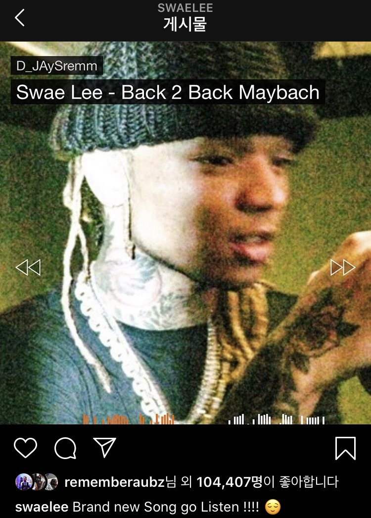그런데 나는 대단히 이중적인 사람이라서 뮤지션이나 음반에 대해서는 또 생각이 다르다. 고전 힙합을 무척이나 좋아하는 나이지만, 최신 힙합에는 더욱 환장하고 보는 식이다. 불과 어제만 해도 내가 가장 아끼는 래퍼 'Swae Lee스웨 리'가 사운드클라우드에 신곡을 하나 발표했는데(노래 제목은 Back 2 Back Maybach이다), 곡을 발표했다는 그의 인스타그램 포스팅에 얼마나 가슴이 떨리던지 하마터면 스마트폰을 아스팔트 바닥으로 떨어뜨릴 뻔했다.