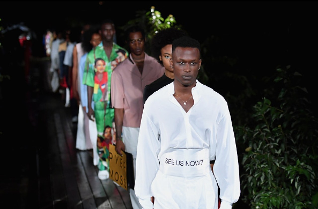 피어 모스의 런웨이 쇼는 마치 #BlackLivesMatter 운동의 예술 무대처럼 느껴진다. 그곳에선 블랙 아메리칸 내러티브가 다양한 형태로 펼쳐진다. 노래가 있고 미술이 있으며 영상이 있고 무엇보다 의미 있는 이야기가 있는 식이다. 백인 경찰 과잉 진압의 피해자 가족들을 쇼의 맨 앞줄에 초청해 그들을 위로하는 비디오와 퍼포먼스를 선사하기도 하고, 빵빵한 성가대가 블랙 파워를 드러내는 음악을 짱짱하게 부르며 무대를 더욱 빛내기도 한다. 이에 질세라 시인, 래퍼, 소울 뮤지션 등도 등판해 피어 모스의 스토리텔링에 가담한다. 경찰의 잔인성에 대한 비판으로부터 화이트 워시 되어 잊힌 흑인 카우보이 이야기, 그리고 옛 노예 제도 스토리까지, 주제도 다양하다.
