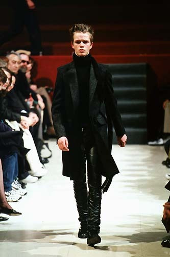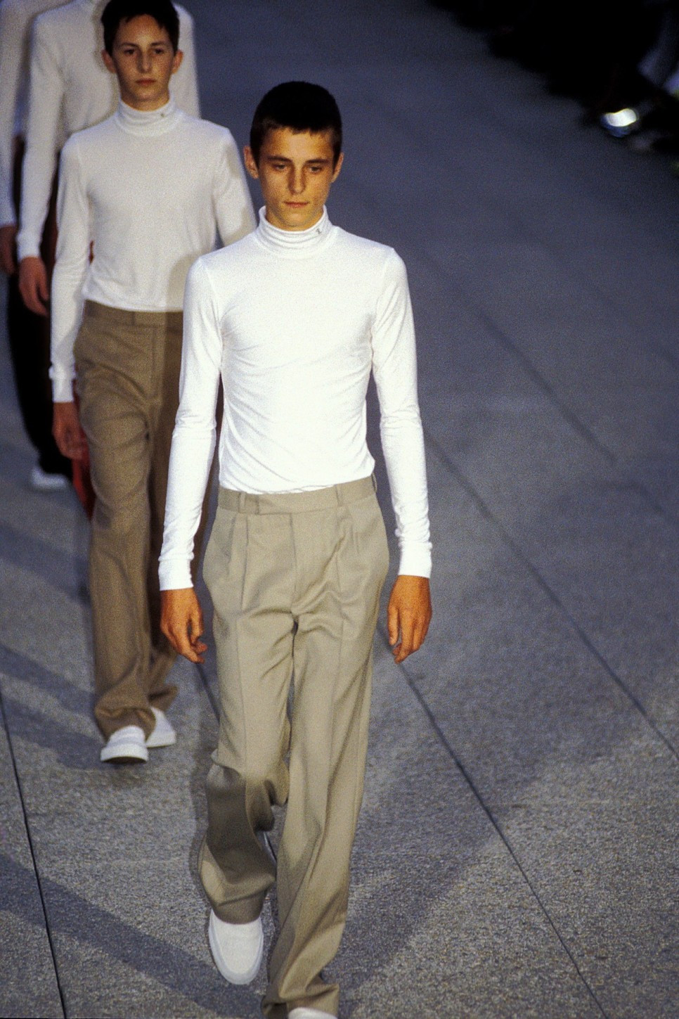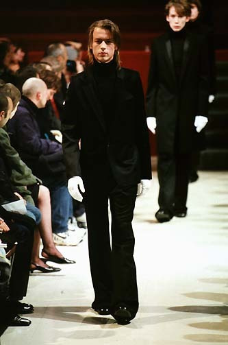 루즈한 배기 핏 실루엣이 유행하던 세기말, 라프 시몬스는 동명 브랜드의 여섯 번째 컬렉션이었던 1998년 봄/여름 컬렉션 'Black Palms'에서 대단히 마른 남성 모델들과 함께 슈퍼 슬림 룩을 선보였다. 라프 시몬스는 당시의 스타일을 '스키니하고 길쭉한 블랙 수트'라며 회고했다.