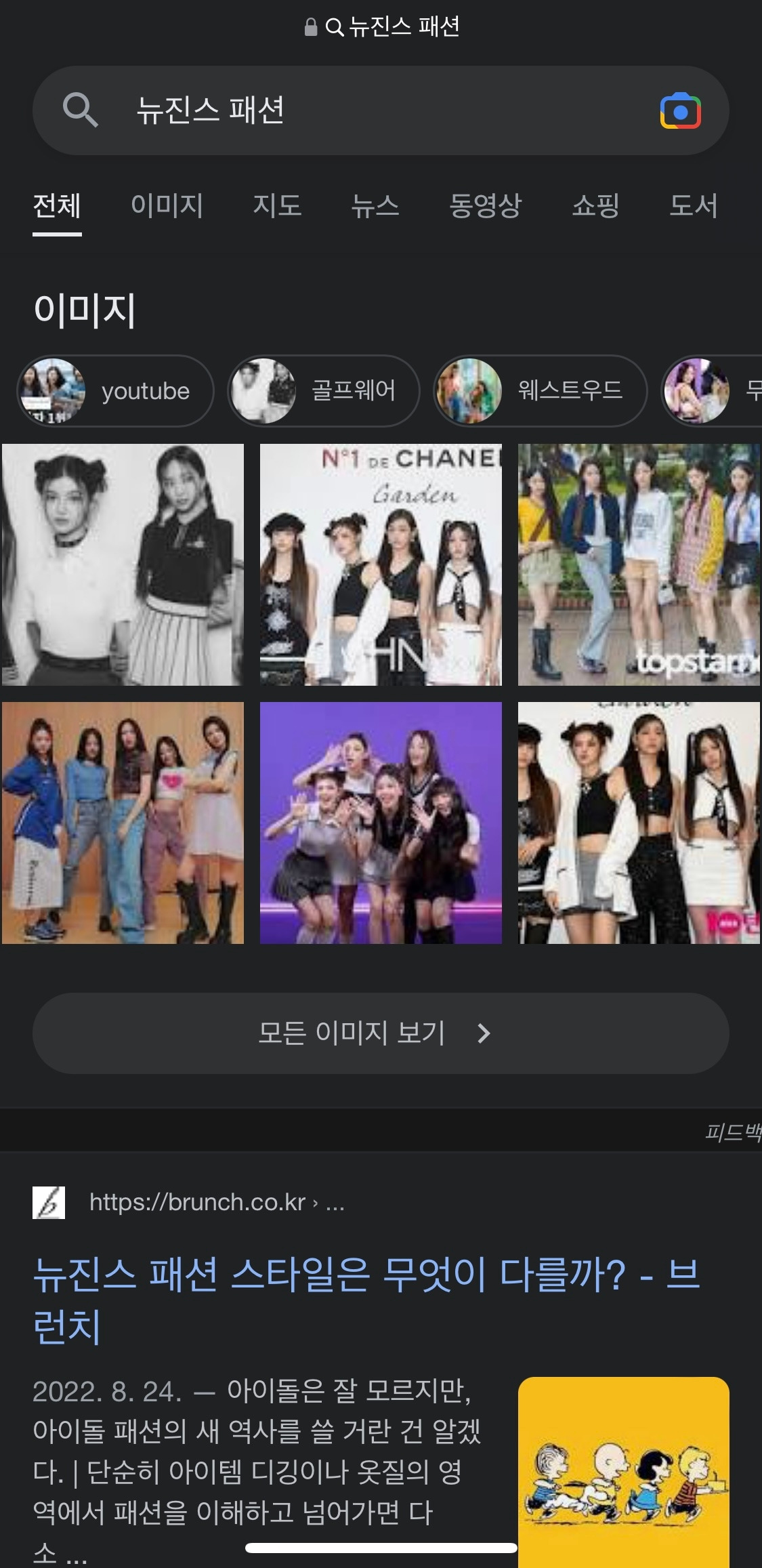 관련하여 얼마 전에 작성한 <뉴진스 패션> 관련 글은 구글 검색 시(‘뉴진스 패션’을 검색했을 때) 최상위에 노출되고 있는 걸 아까 확인했다. 한 나흘 전만 해도 하퍼스바자와 서울신문, 하입비스트 등 유수의 매체에 밀려 3, 4번째 순서로 노출되고 있었는데 해당 게시물이 Daum 메인에 한 번 노출되면서 게시글 점수가 크게 올라간 것으로 미뤄 짐작하고 있다.