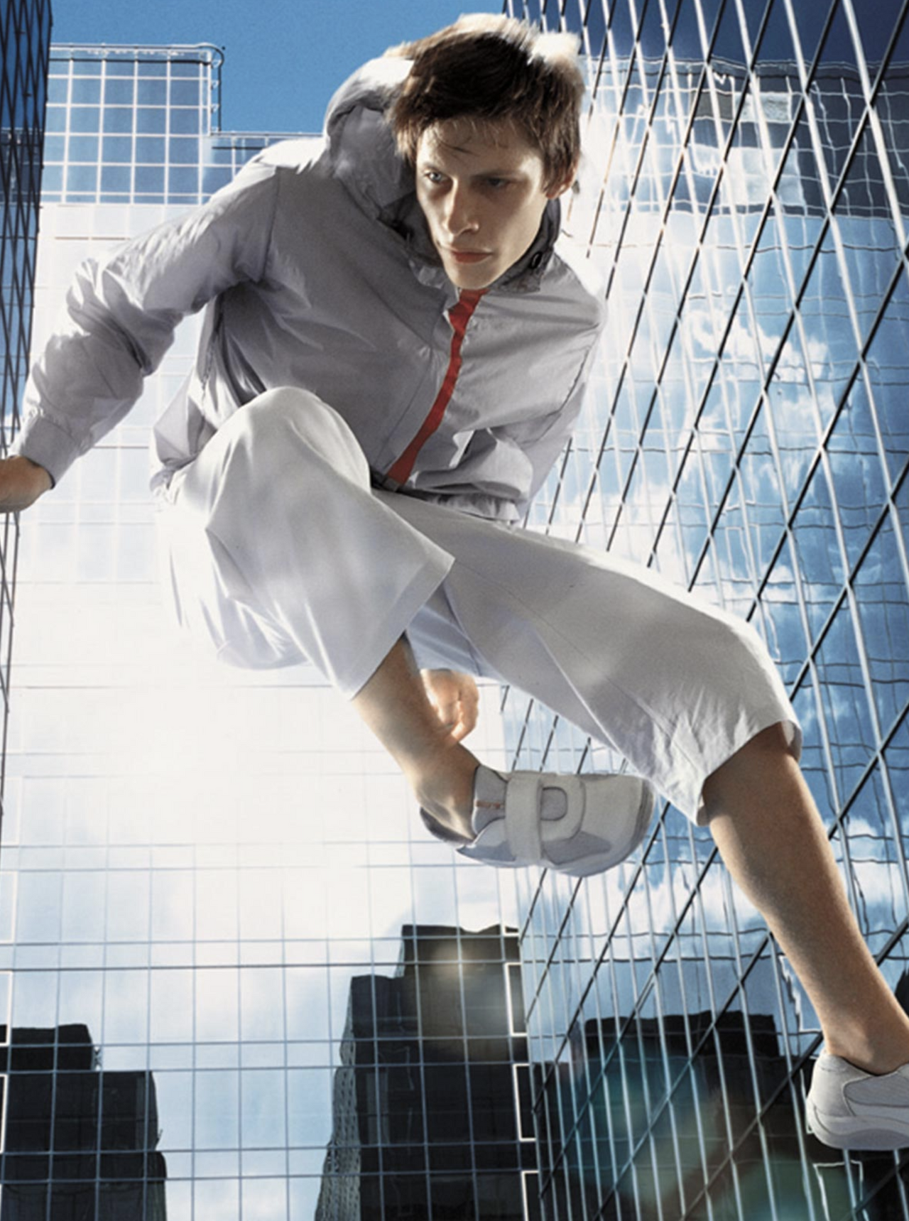 그리고 루나 로사 팀의 요트 디자인 일부는 1998년 탄생한 럭셔리 패션 브랜드 ‘프라다’의 ‘프라다 스포츠’와 ‘리네아 로사(이탈리아어로 Red Stripes)’ 라인의 모티브가 됩니다. 이때 프라다 스포츠 라인의 디자인 키를 잡고 있던 인물은 영국 출신의 미니멀리즘 패션 디자이너 ‘닐 바렛’이었는데, 그는 95년에 기용된 신예 디자이너로서 프라다의 맨즈 웨어 라인을 신설하고, 스포츠웨어 패브릭과 함께 변혁적인 테일러링을 완성해 프라다 스포츠를 이끌었습니다.