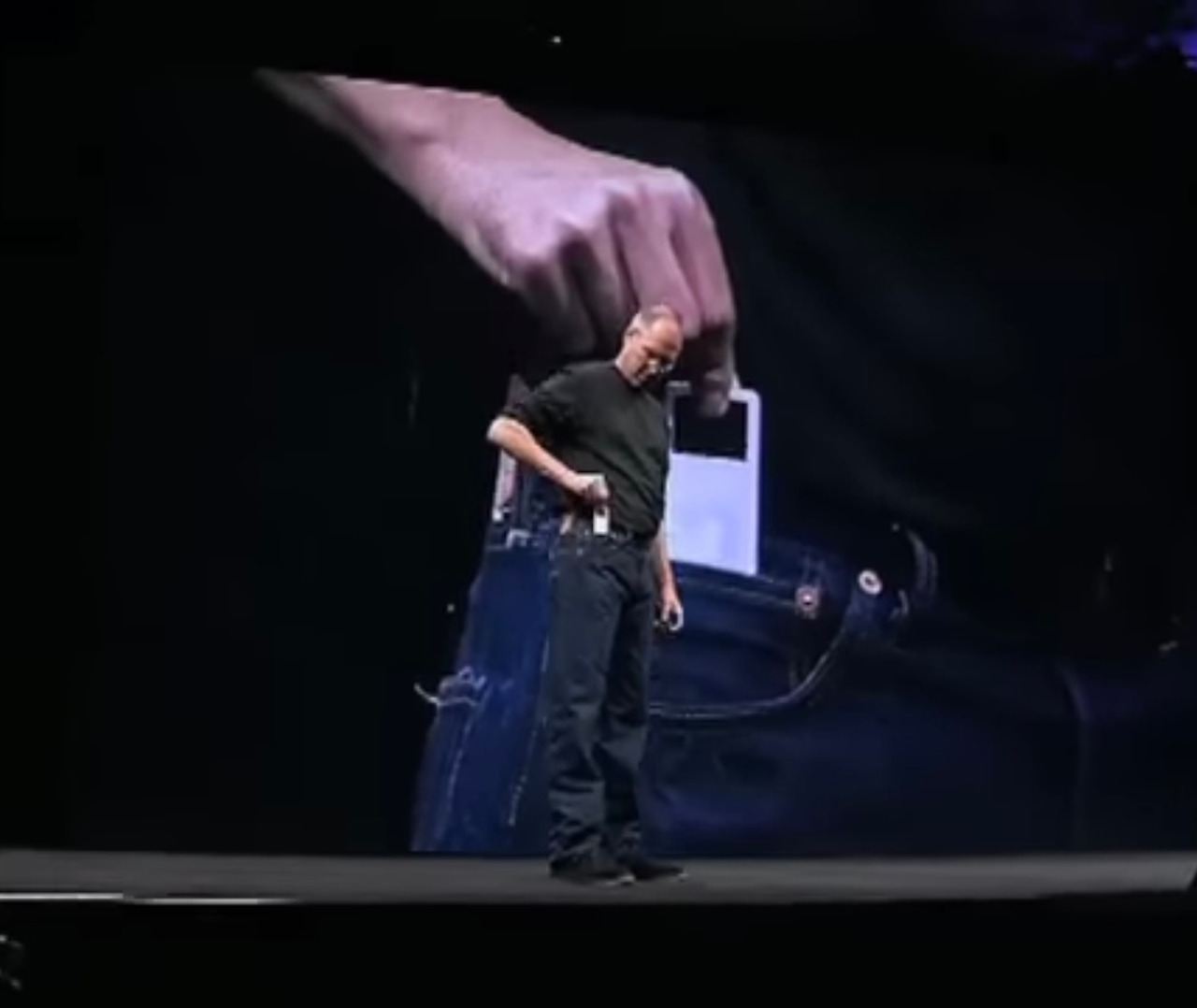 2005년 9월, 스티브 잡스는 청바지 주머니에서 아이팟 나노를 꺼내 발표했다.