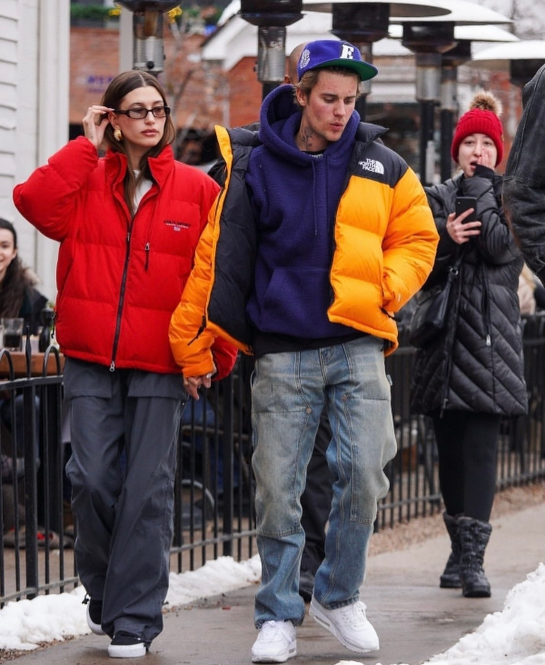 그리고 단짝 저스틴 비버는 노스페이스의 빈티지 눕시 재킷을 입었다. 솔직히 별로임!