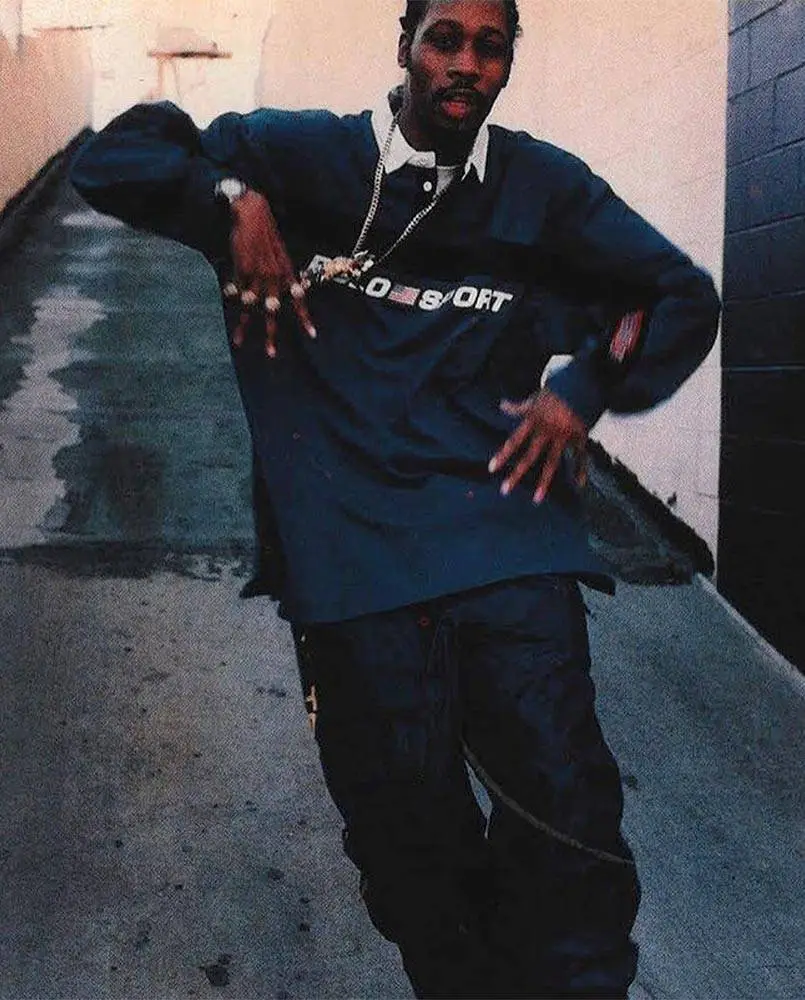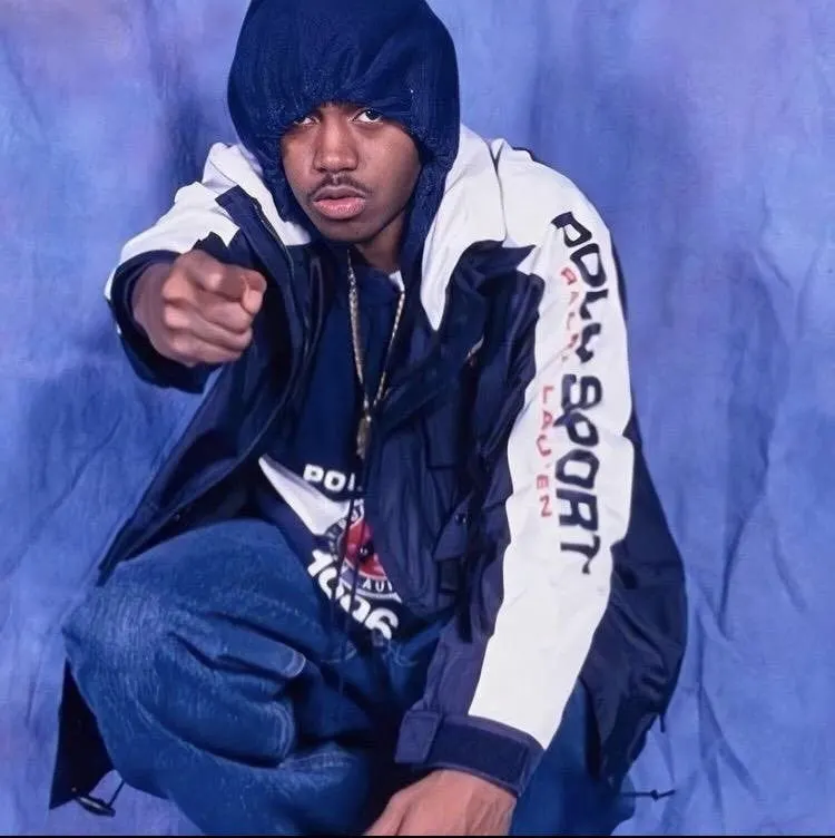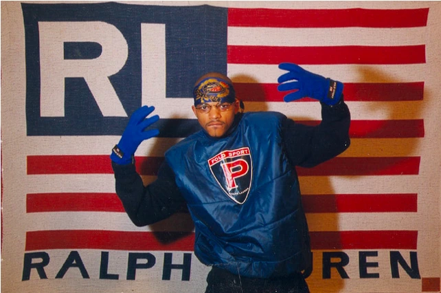 <1993년 폴로 스포츠의 스노 보드 컬렉션의 대표 아이템이었던 '스노 비치' 파카를 입은 우탱클랜의 래퍼 '래퀀'의 모습, 같은 해 발매한 그룹의 전설적인 데뷔 앨범 수록곡의 뮤직 비디오에서 입고 나와 대박을 터뜨렸다.>