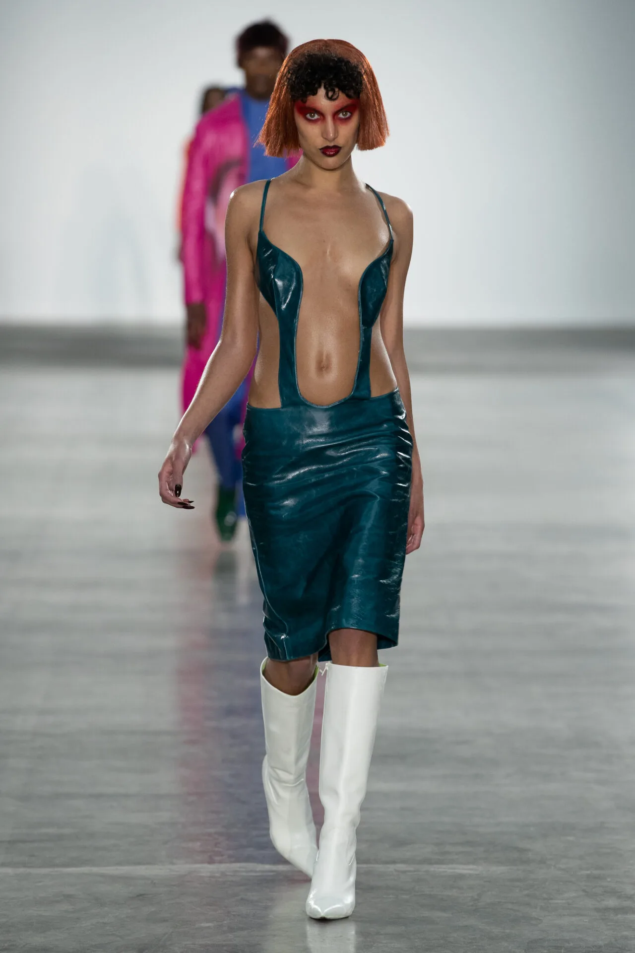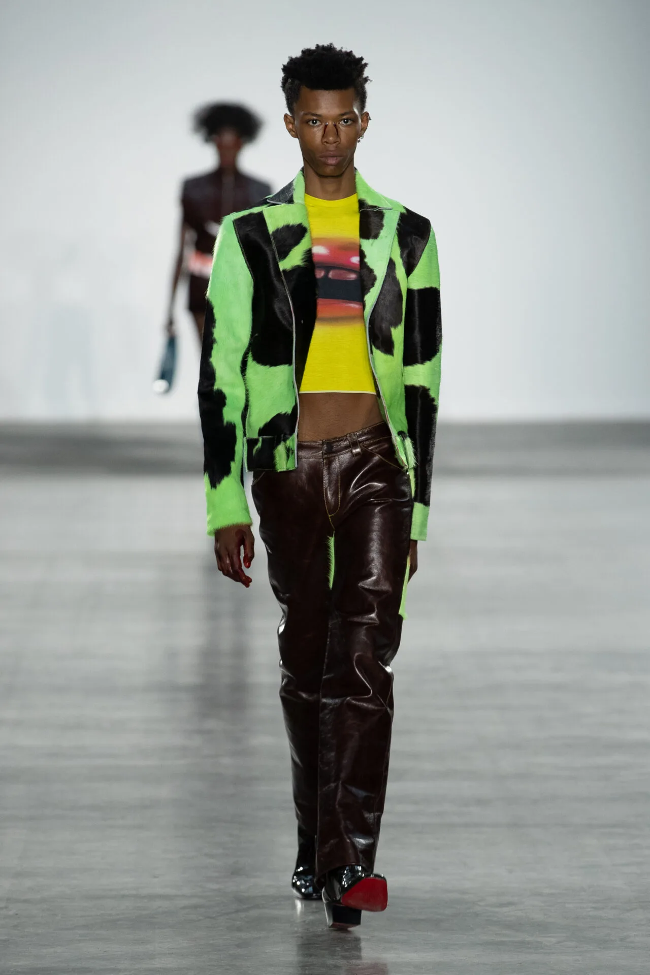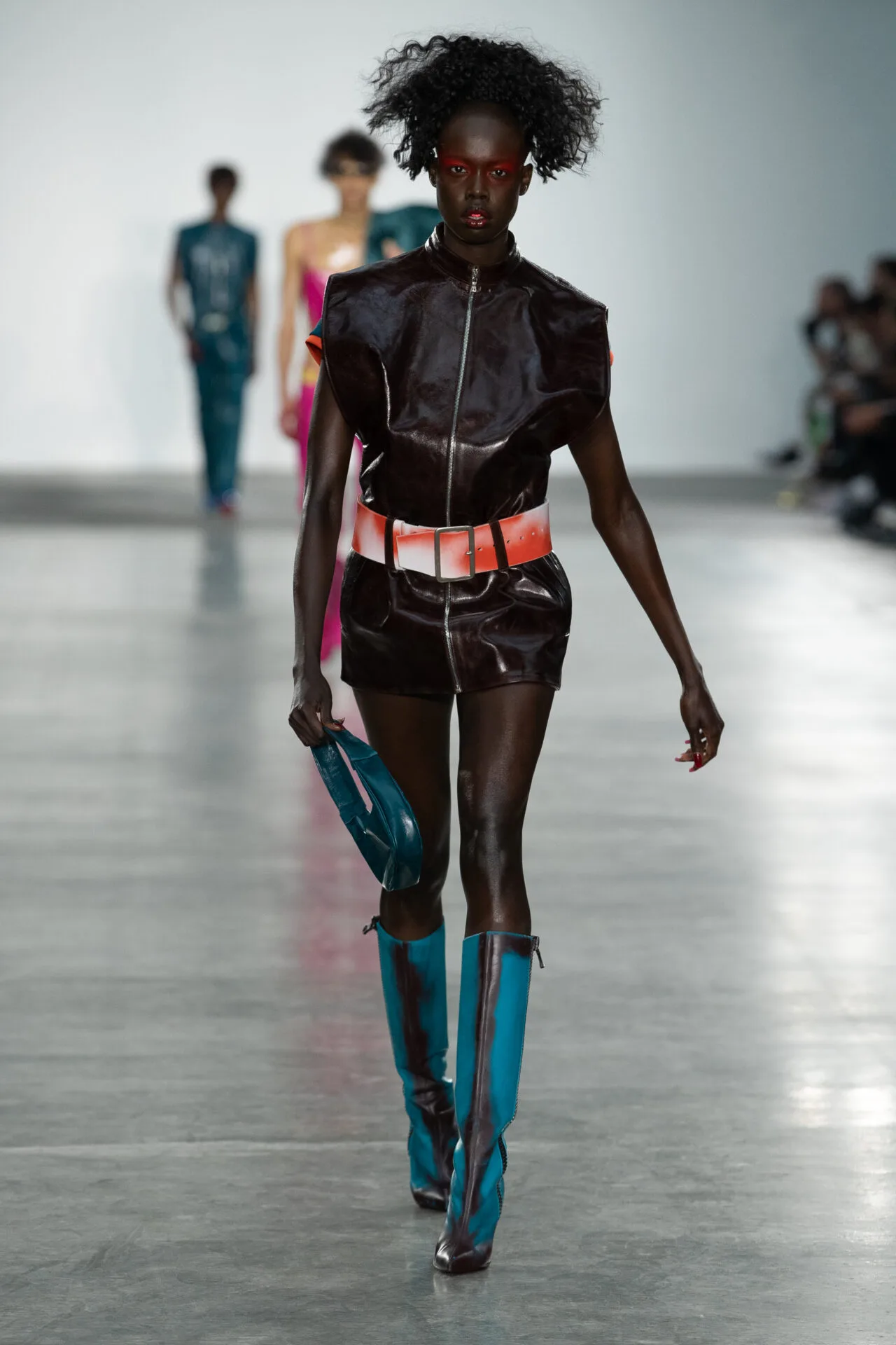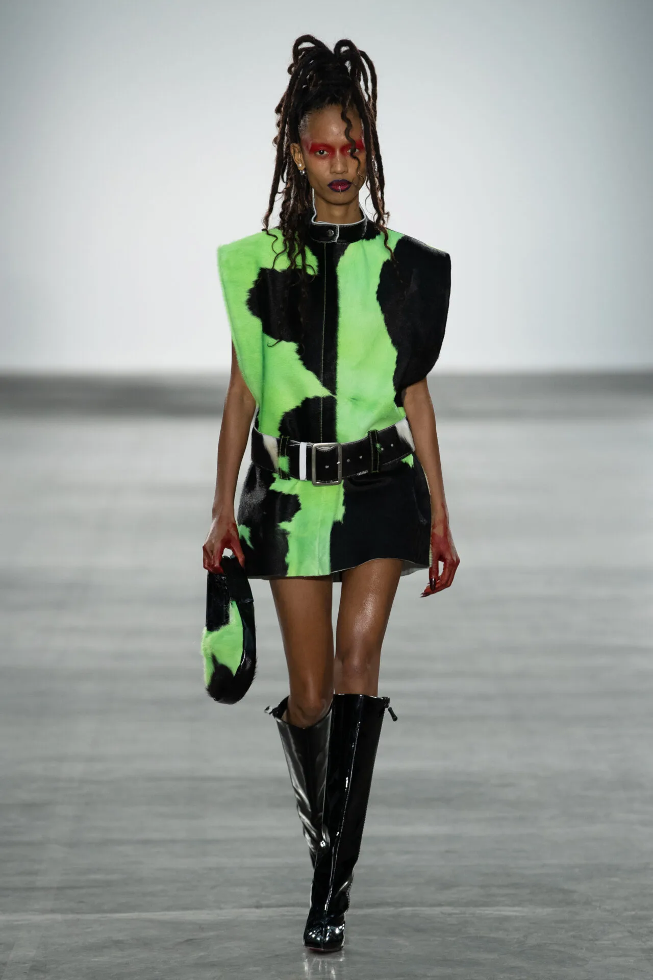 사회 파멸의 상상 속 패션, 거대 기업이 지닌 막강한 권력이라는 화두를 키치하고 트렌디하게 던져보는 일, 진지하고 심각한 이야기를 늘어놓을 때에도 그 하중을 세련되게 떨구는 것이 단순한 ‘하입’ 이상의 매력을 확보하는 프로 디자이너들의 준비된(타고난) 센스가 아닐까 싶다.