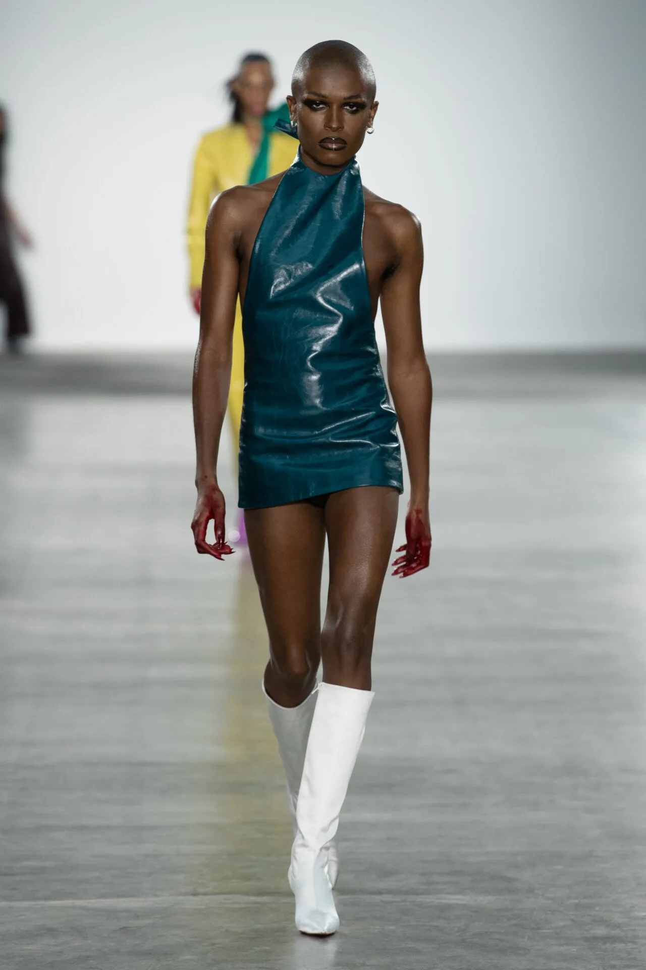 목적이 분명한 작업물을 만들기를 선호한다는 그녀는 ‘나오미 캠벨’이 입은 <총 맞은 것처럼> 화이트 드레스 패션으로 무엇보다 먼저 이목을 끌었다.
