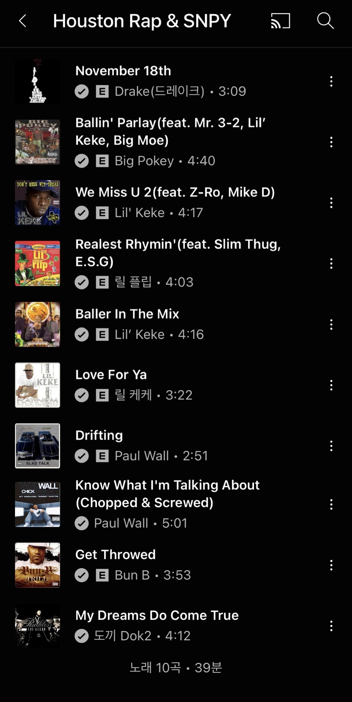 서른이 넘고는 정작 학창 시절에 설렁 맛만 보던 90년대와 00년대의 <휴스턴 힙합(남부 힙합)>이 너무 좋아져서 미칠 지경이었다.