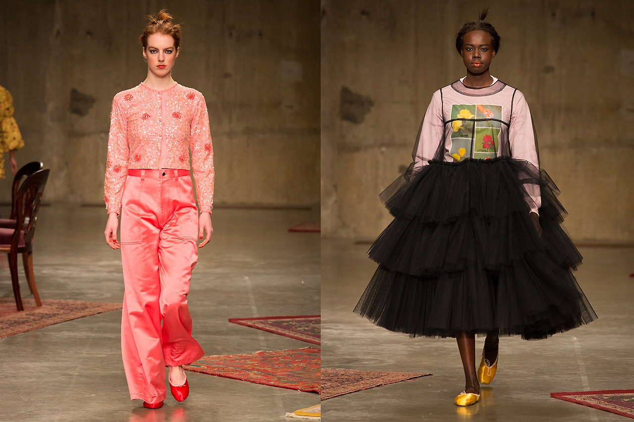 핑크를 자주 활용하지만, 핑크의 고정관념을 털어내고, 소녀 패션에서 줄곧 영감을 받지만, 소녀 패션의 물귀신 같은 전형성을 넘어서는 이건 반박이 불가능한 천재적인 기만이 아닌가?