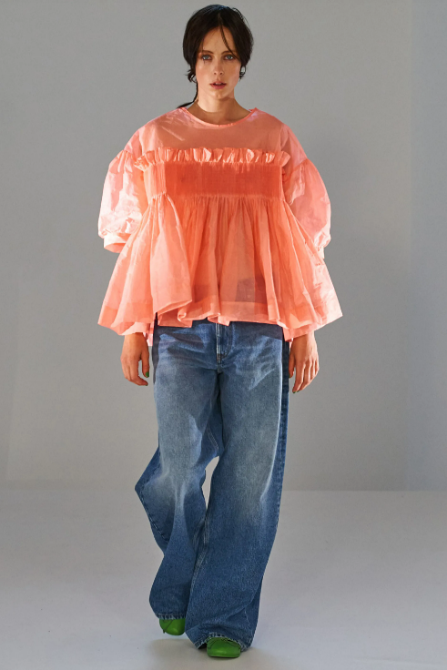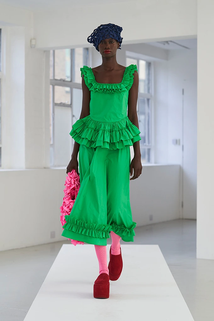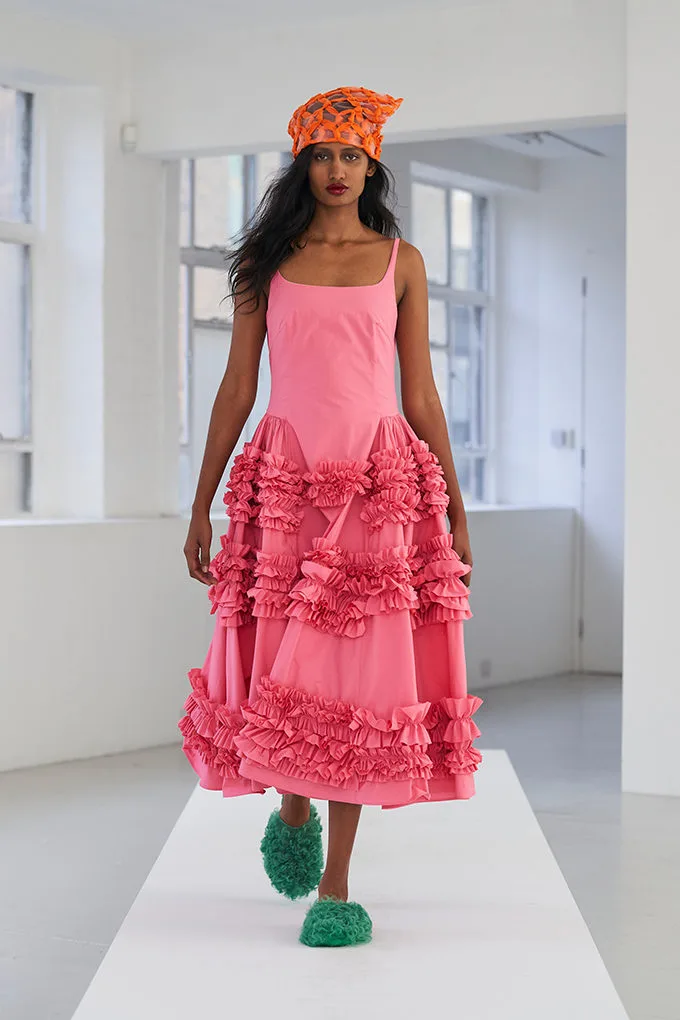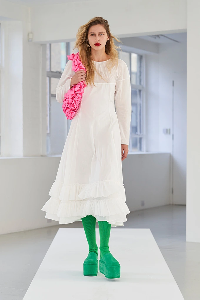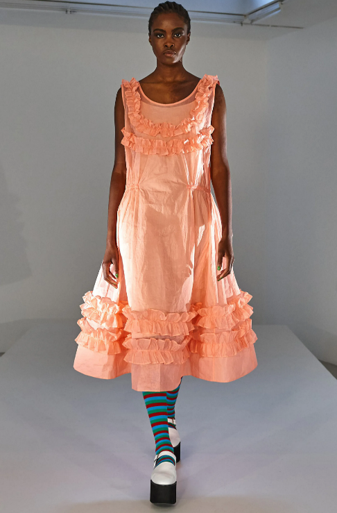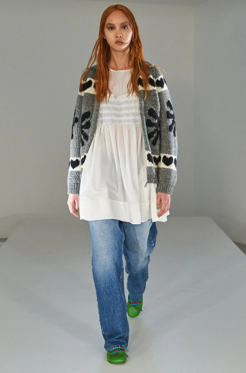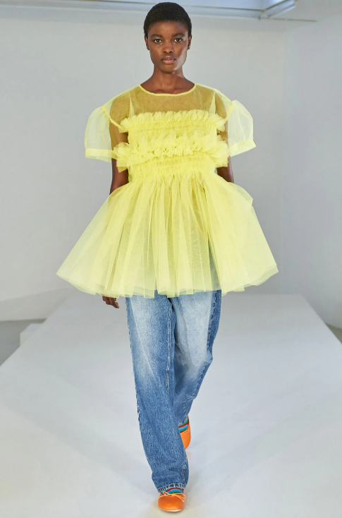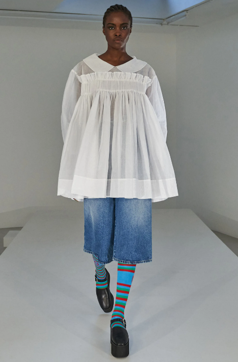 실루엣이나 핏보다는 <소재감>이라는 한 끗에 열정을 태우며, 어린 소녀들의 옷을 과장스럽게 표현하는 그녀의 시그니처 스타일은 튈(tulle) 파티 드레스와 전통적인 수작업을 활용한 크로셰, 주름 기법, 스모킹이 가미된 옷들이 주를 이루는데,