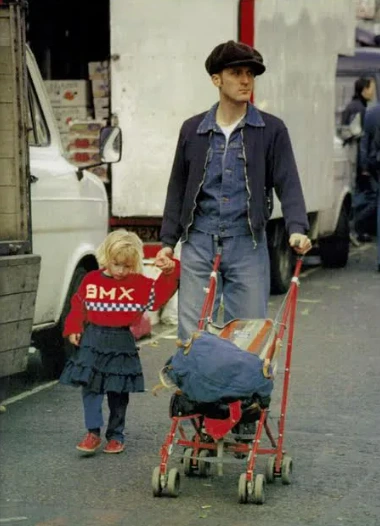 사진의 배경은 영국 최고의 골동품 시장이 있는 런던 노팅힐의 포토벨로 로드인데, 청청 패션을 한 멋쟁이 아빠와 깔맞춤 코디 위에 러플 스커트를 얹은 귀여운 꼬마 소녀가 손을 잡고 어딘가로 향하고 있다.