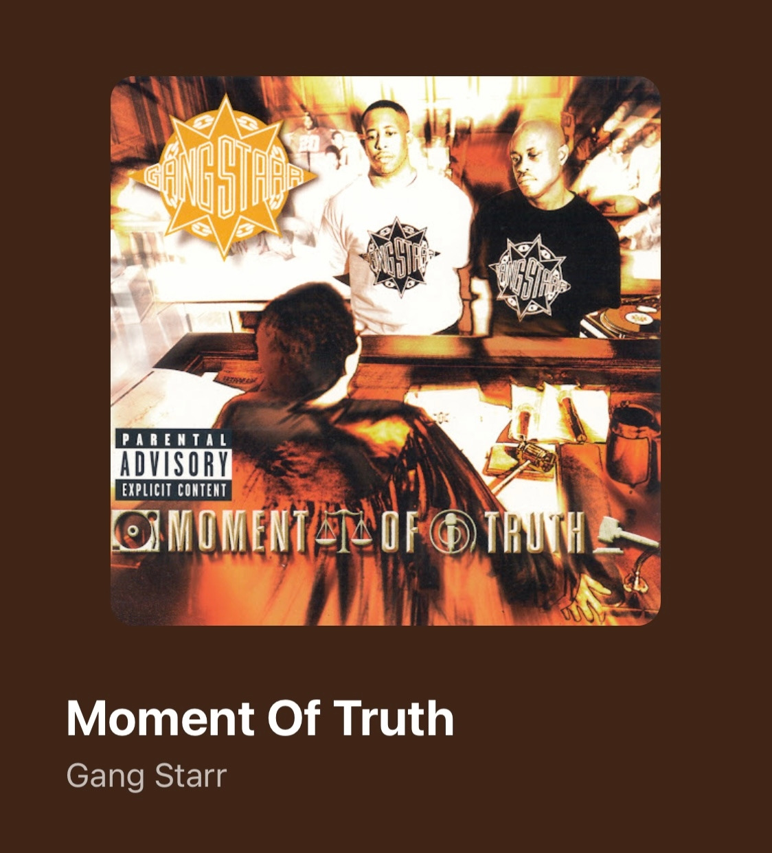 미국의 전설적인 힙합 듀오 Gangstarr의 띵곡 <Moment of Truth> 말이다.