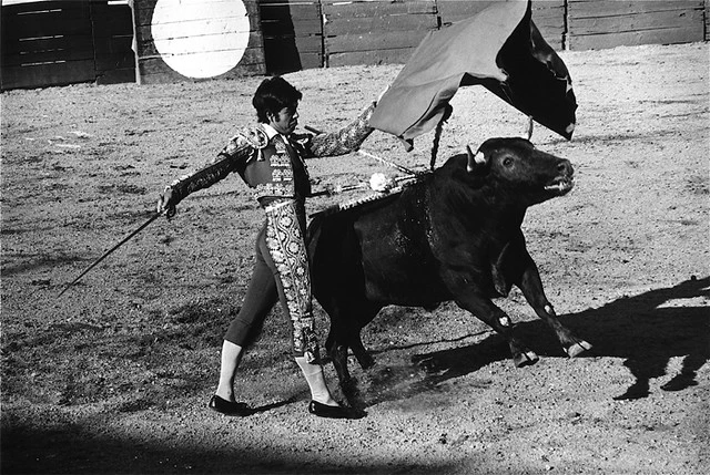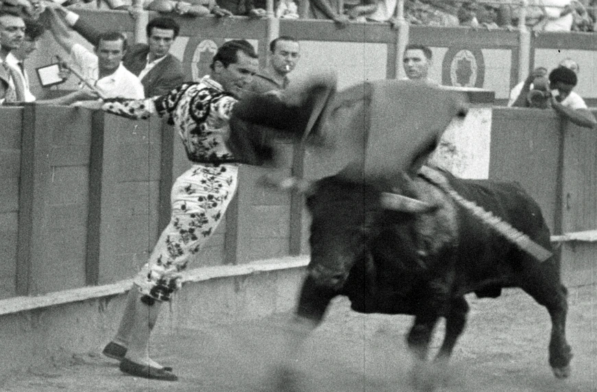 하루종일 암흑의 방 안에 갇혀 있던 황소는 쏟아지는 햇살 속으로 튀어 나가고, 붉은 천의 우롱에 흥분해 인간에게 대든다.