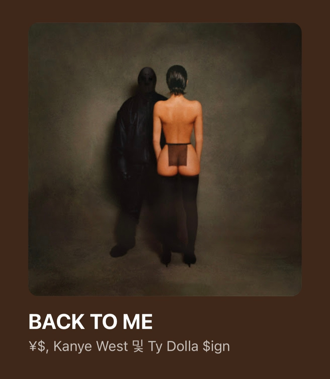 와이프의 신체를 캔버스처럼 활용하며 개취(개인 취향)를 대중 전시하고, 많은 이의 눈살을 찌푸리게 한 공로와 함께(올드 칸예로의 원복을 더욱 애타게 염원하도록 만든다) 다소 막돼먹은 대리 패션 기행을 보여주고 있는 올뉴 칸예,